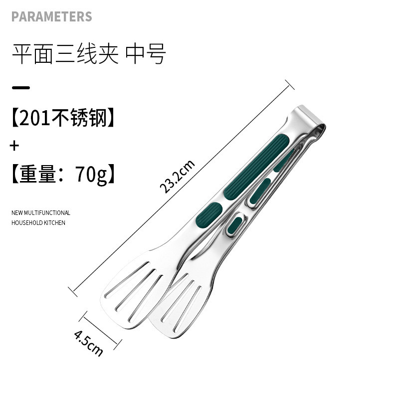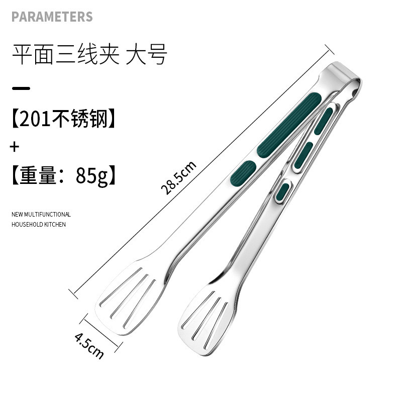스테인리스 음식 집게 도매 바베큐 집게 빵 주방 바베큐 집게 삼선 스테이크 음식 집게 녹색 실리콘