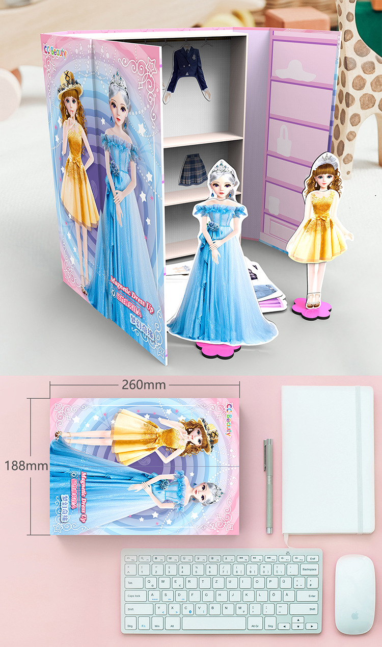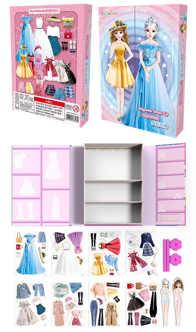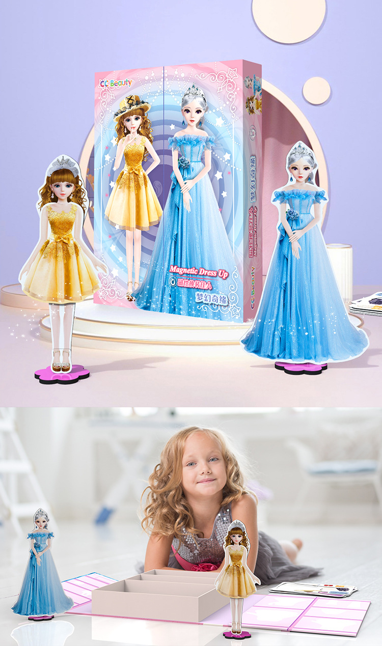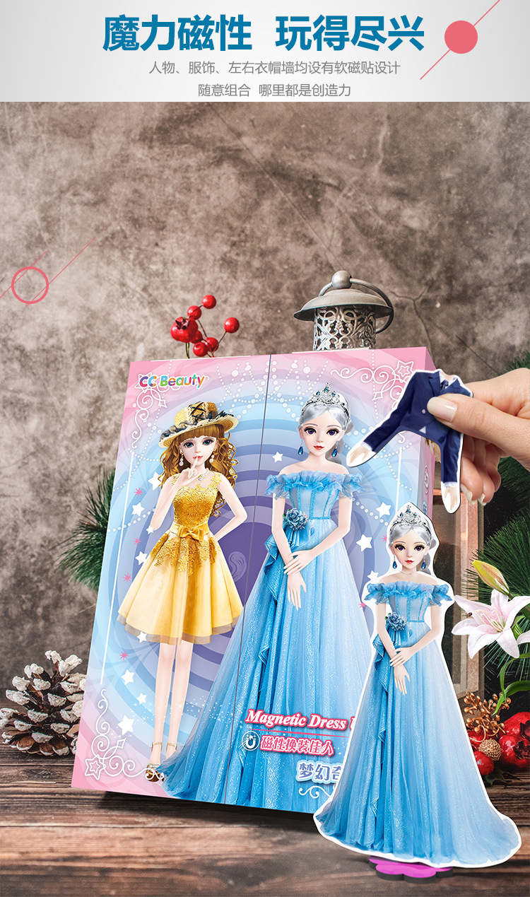 인터넷 연예인 스타일의 엘사 공주 자석 드레스업, 반복 가능한 입체 드레스업, 여아 의류, 인형, 어린이 장난감 및 선물스토어 가기