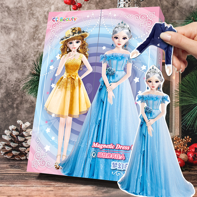인터넷 연예인 스타일의 엘사 공주 자석 드레스업, 반복 가능한 입체 드레스업, 여아 의류, 인형, 어린이 장난감 및 선물