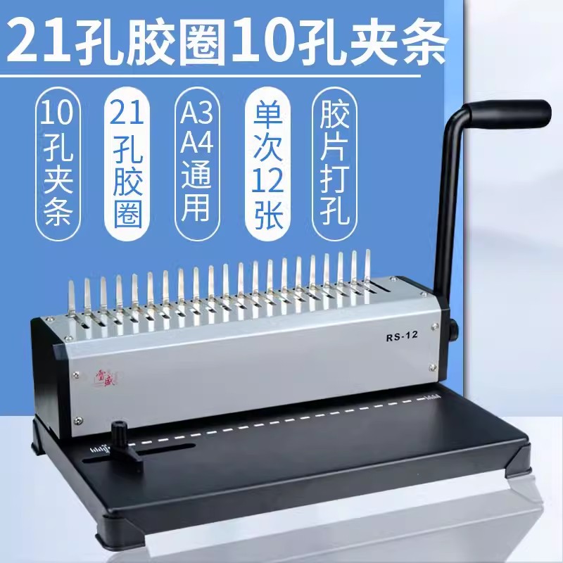 Lei Sheng RS-12 빗 제본기 10 홀 클립 스트립 펀칭기 수동 고무 링 21 홀 a3a4 파일 제본기스토어 가기