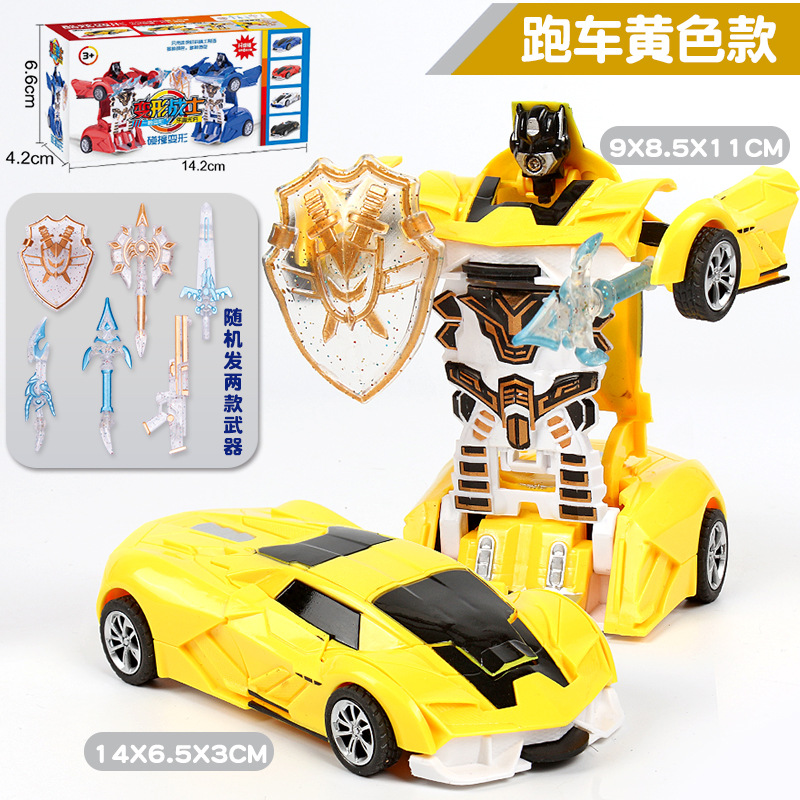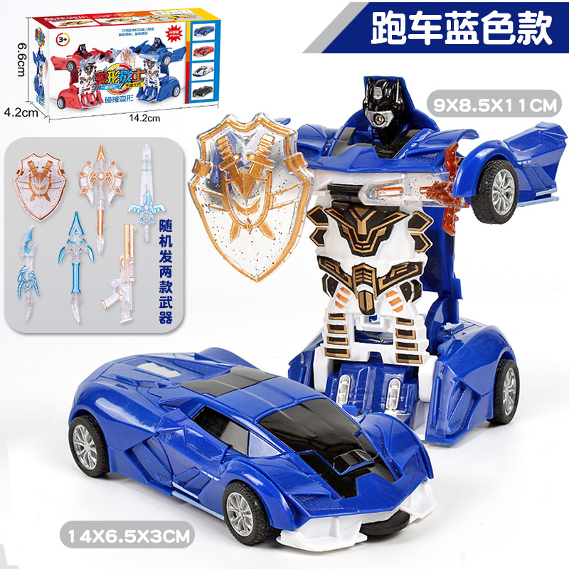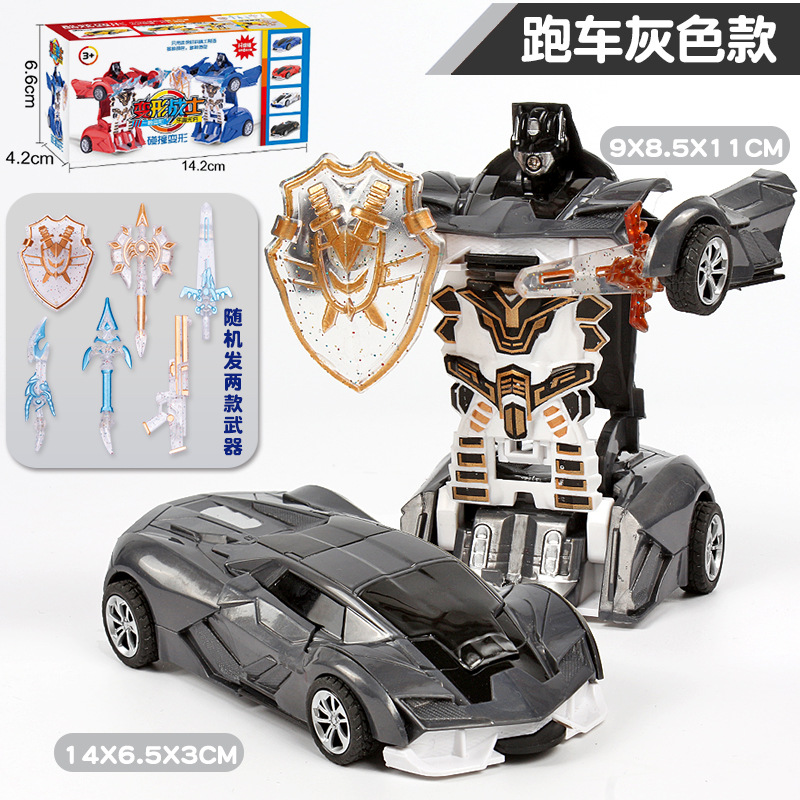 拍下须知:产品是一盒的价格,有多种款式颜色可以选择,一车可2种形态玩法:车子撞击车头可弹射变形成机器人,车子惯性行驶