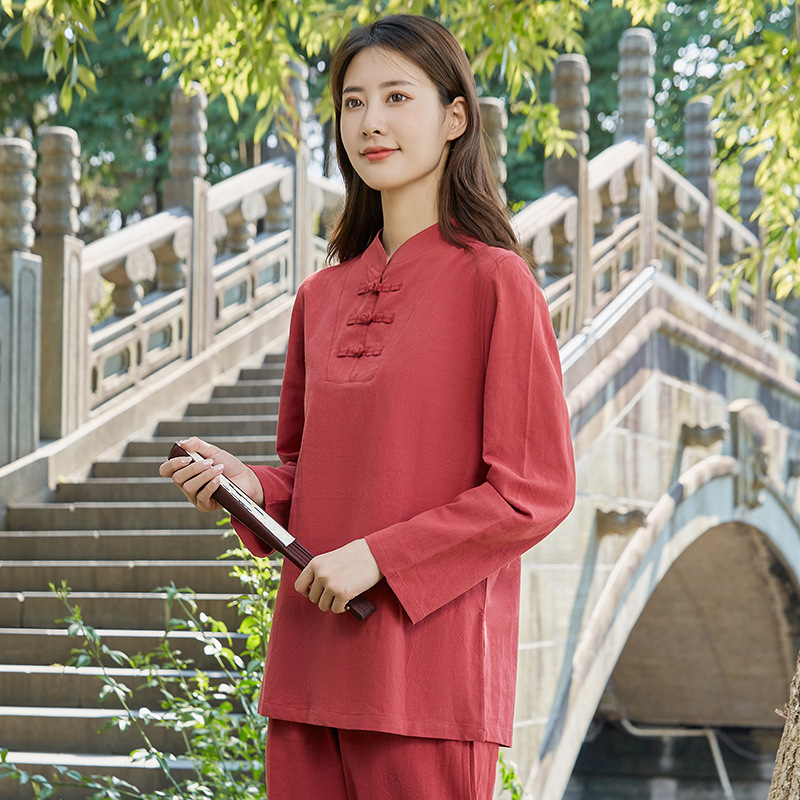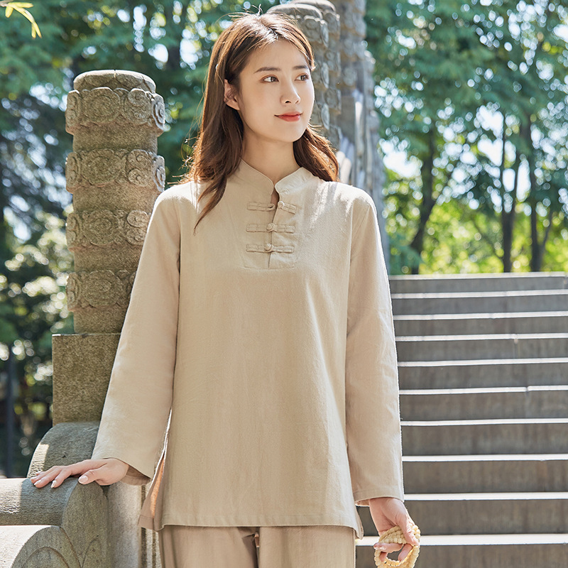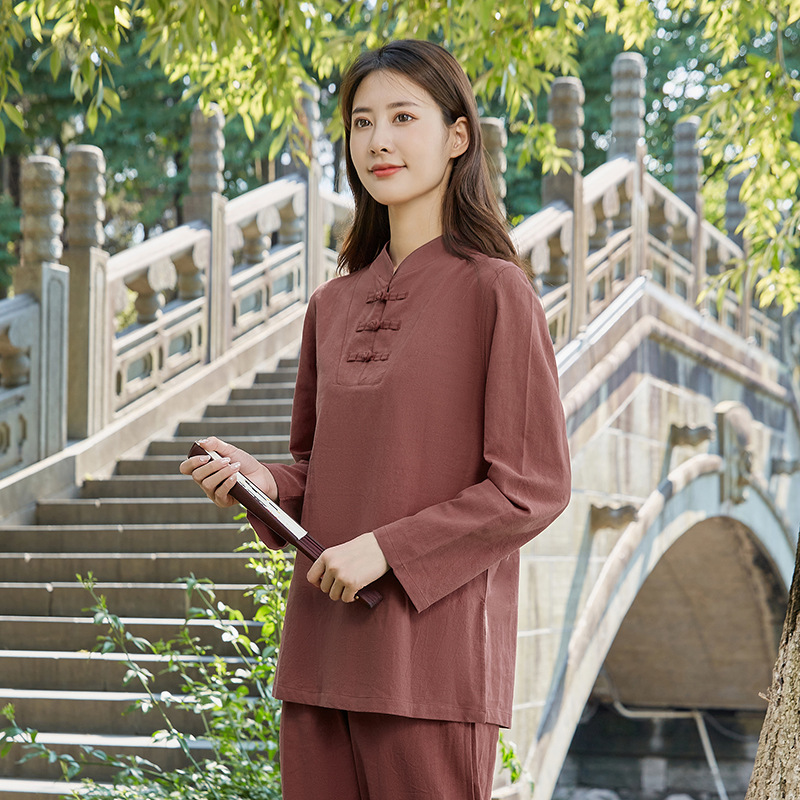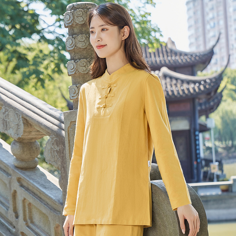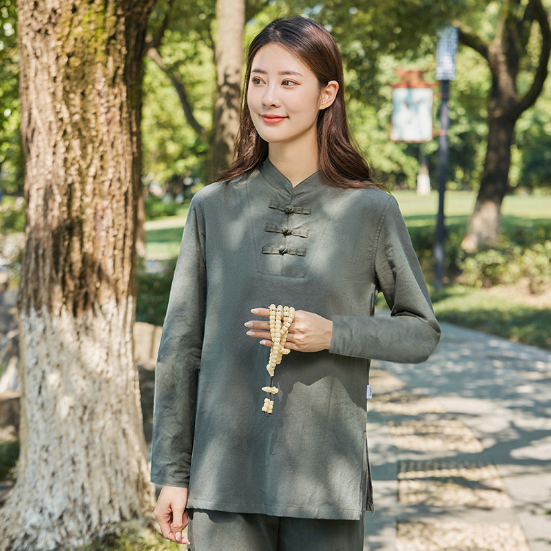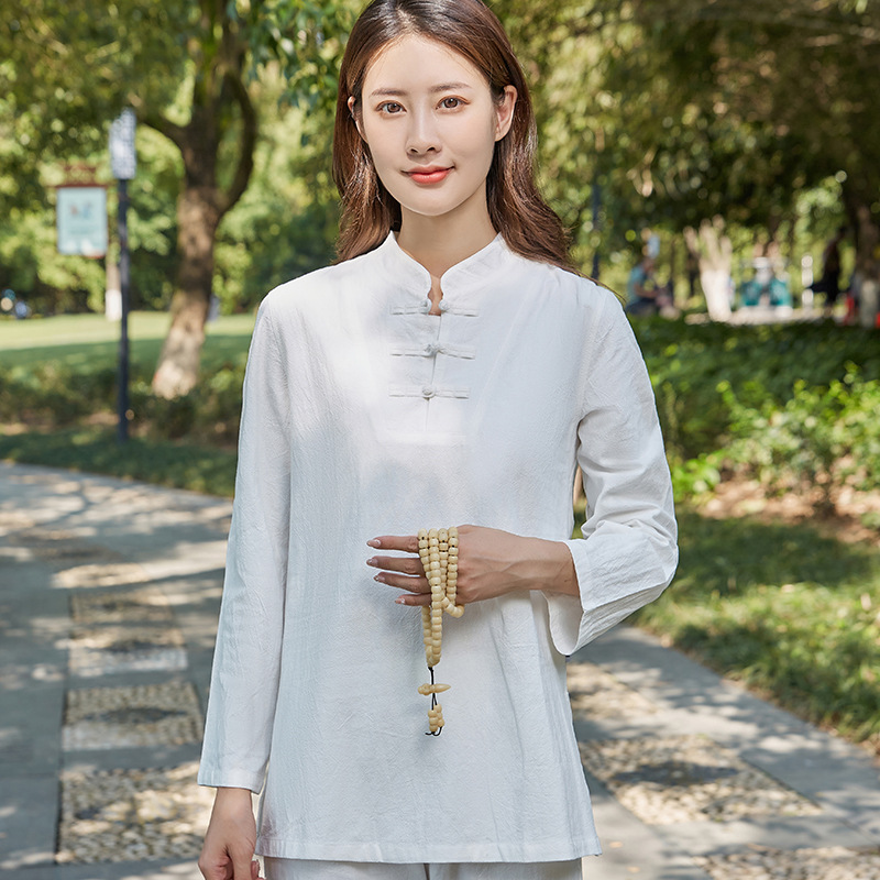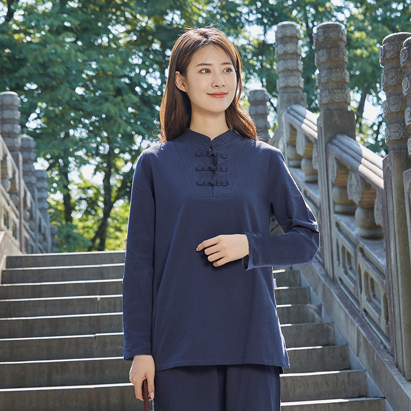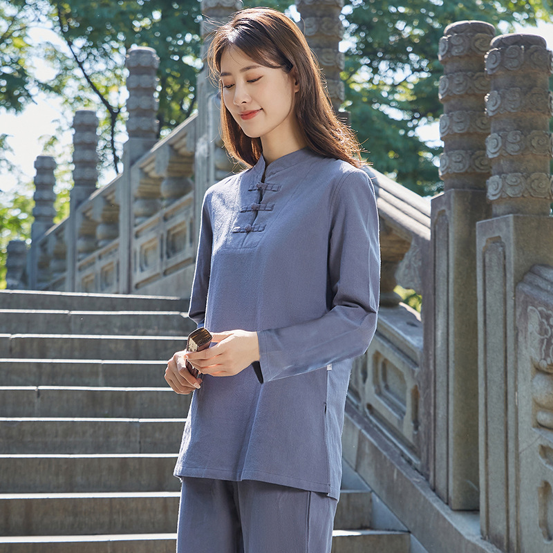 면과 린넨 요가 의류 세트 명상 의류 전통 중국 의학 여성 가구 주인 의류 태극권 의류 차 의류 연습 명상 머리의 세대