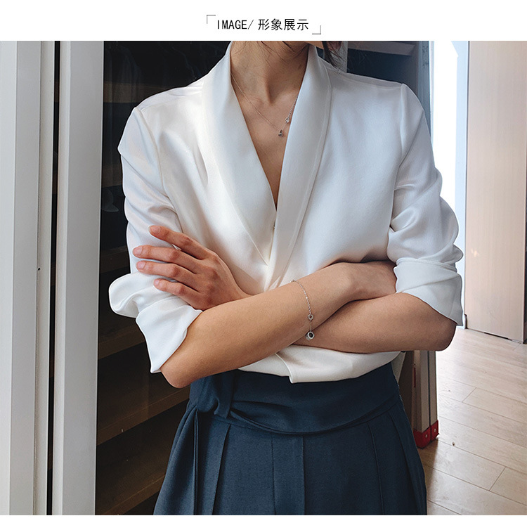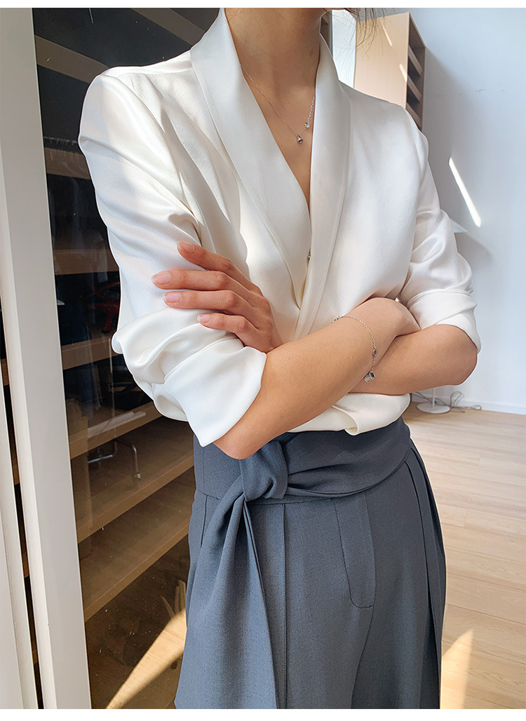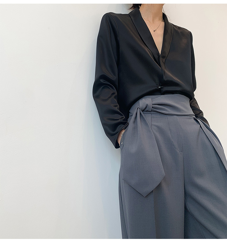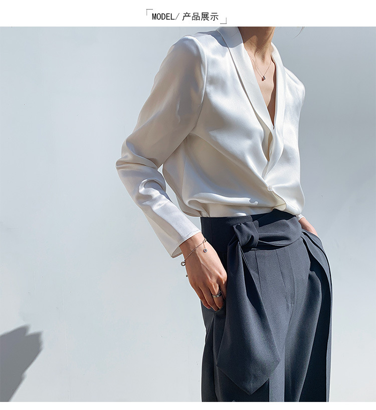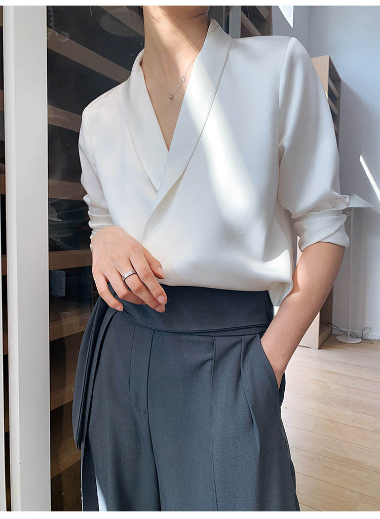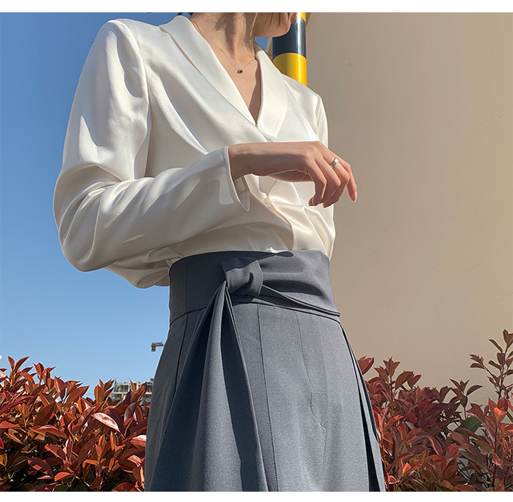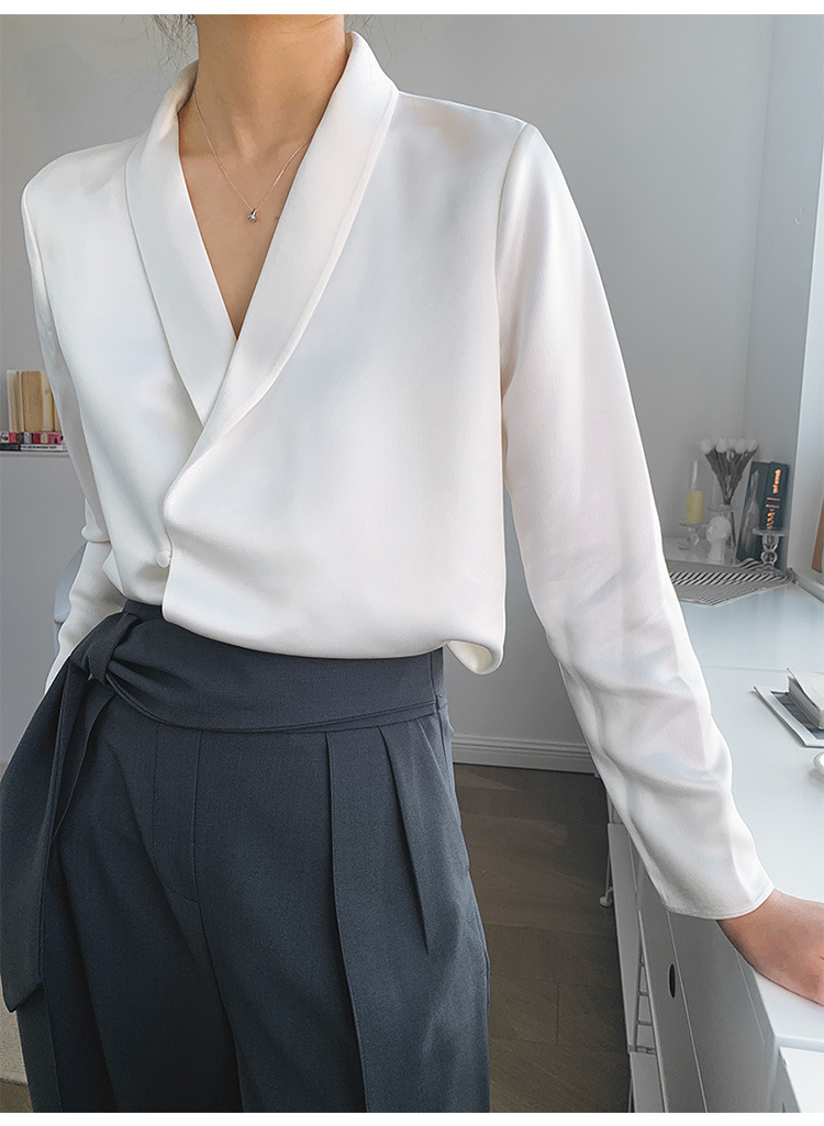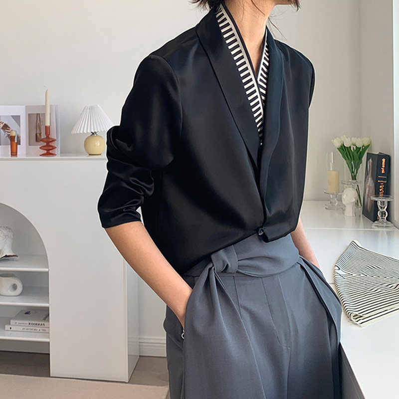 재고 새로운 세트 칼라 프랑스 스타일 심플 에디션 셔츠 긴 소매 단색 여성의 한국 스타일