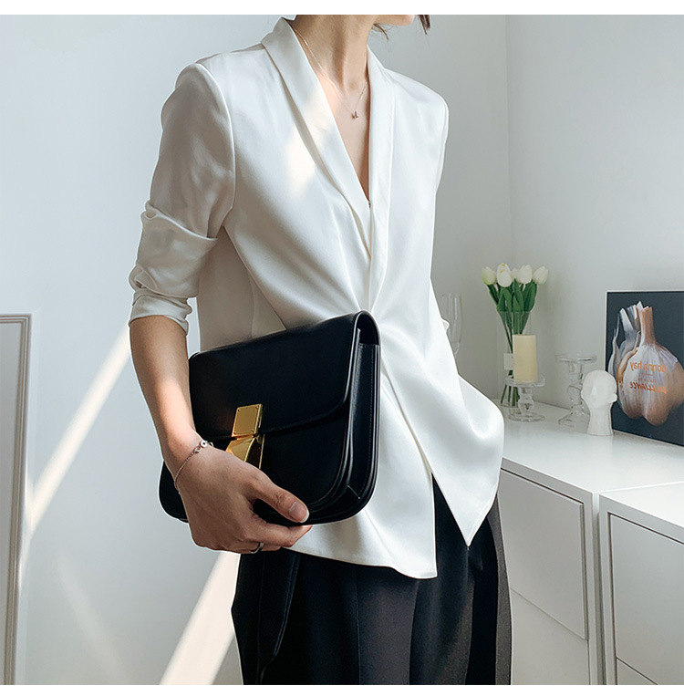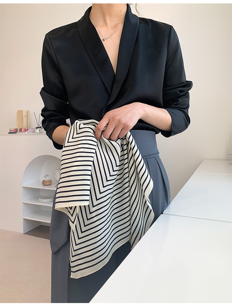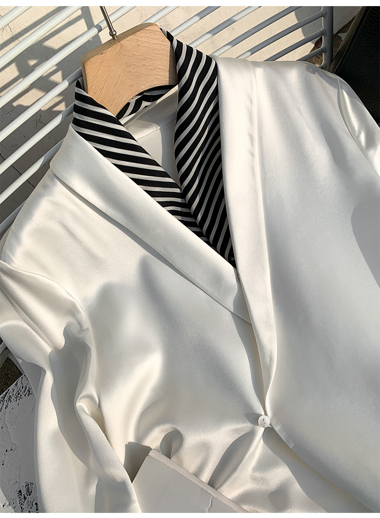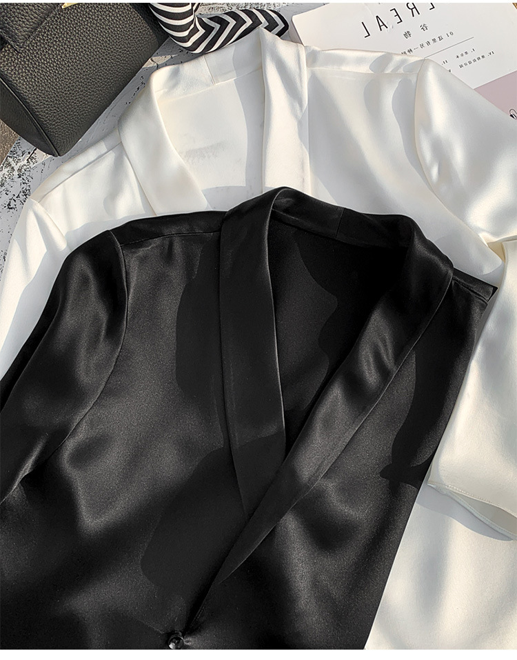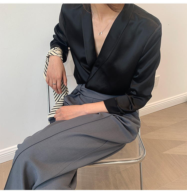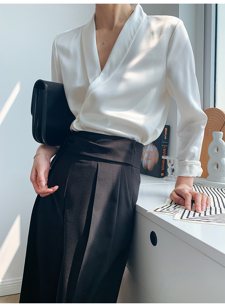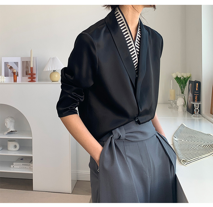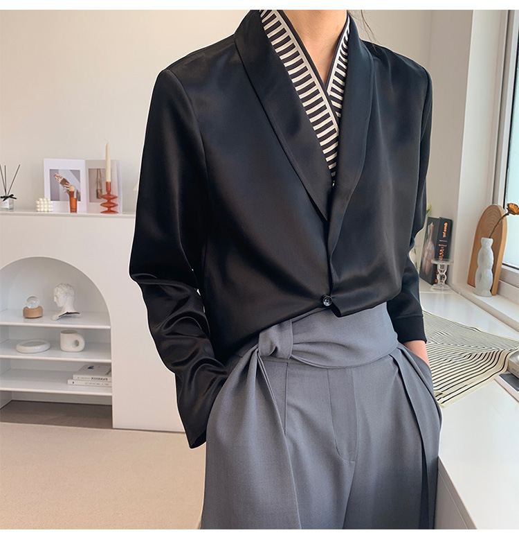 재고 새로운 세트 칼라 프랑스 스타일 심플 에디션 셔츠 긴 소매 단색 여성의 한국 스타일