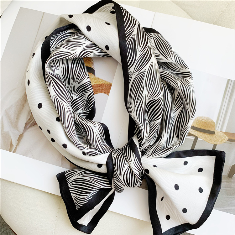 항저우 실크 라인 웨이브 도트 실크 리본 봄과 여름 새로운 더블 레이어 양면 뽕나무 실크 스카프 모든 매치 스카프