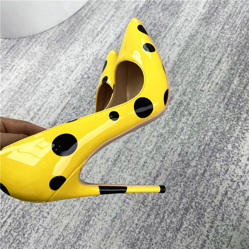 2021 New Wave 도트 하이힐 12cm 뾰족한 얇은 굽 낮은 뱀프 여성 신발 컬러 매칭 부드러운 가죽 신발스토어 가기