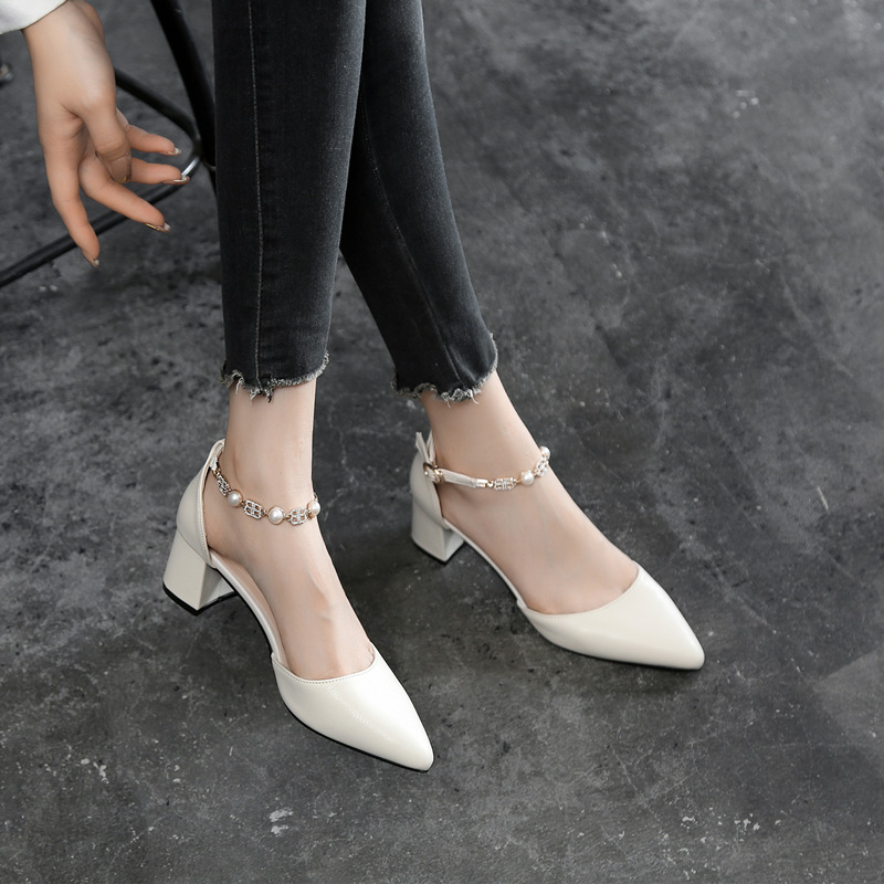 2021 새로운 하이힐 신발 뾰족한 발가락 청키 힐 스몰 사이즈 313233 스트레이트 버클 신발 여성 샌들 플러스 사이즈 414243스토어 가기