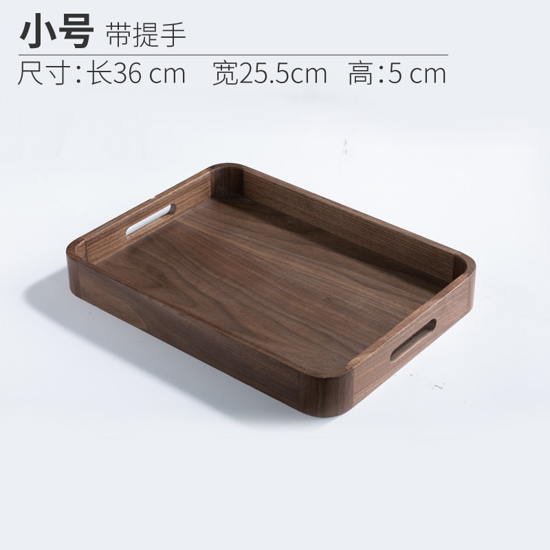 검은 호두 나무 쟁반 차 쟁반 원제 및 테논 구조 손잡이가있는 둥근 나무 차 쟁반 새로운 중국 스타일 가벼운 고급 차스토어 가기