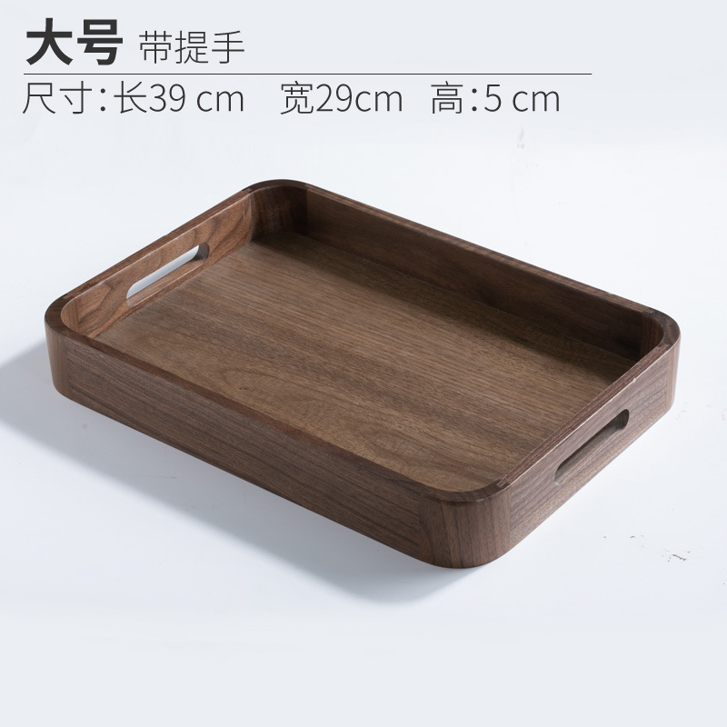검은 호두 나무 쟁반 차 쟁반 원제 및 테논 구조 손잡이가있는 둥근 나무 차 쟁반 새로운 중국 스타일 가벼운 고급 차