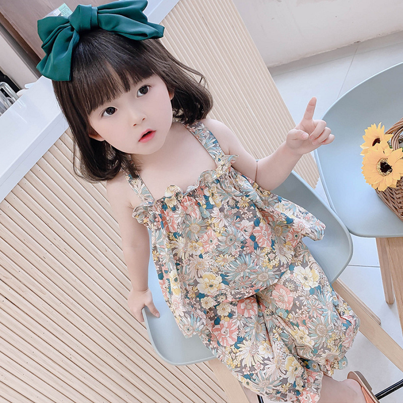 여아 여름옷 세트 2020 신형 아동 중소형 아동 서양식 모기 방지 바지 아동복 슬링 2 종 세트스토어 가기