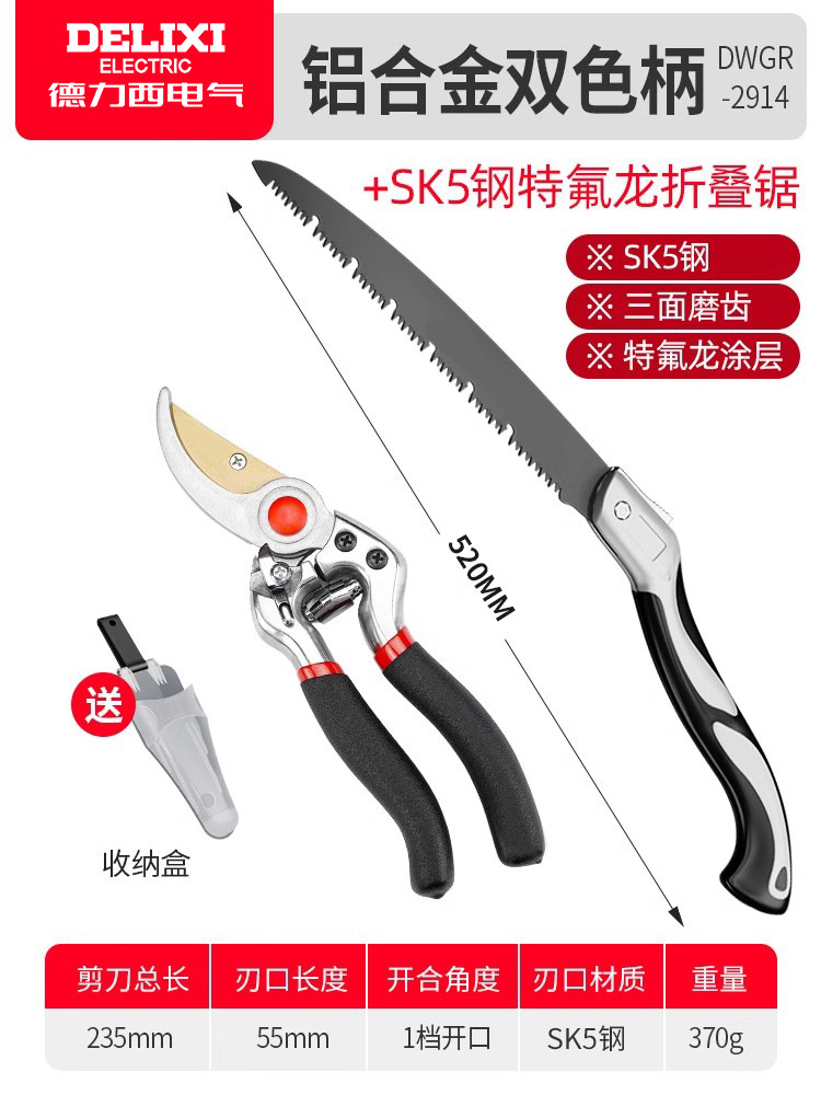 • 일본식 2색 손잡이 [가지치기 가위 + 대형 접이식 톱] 보관함 + 끈 포함