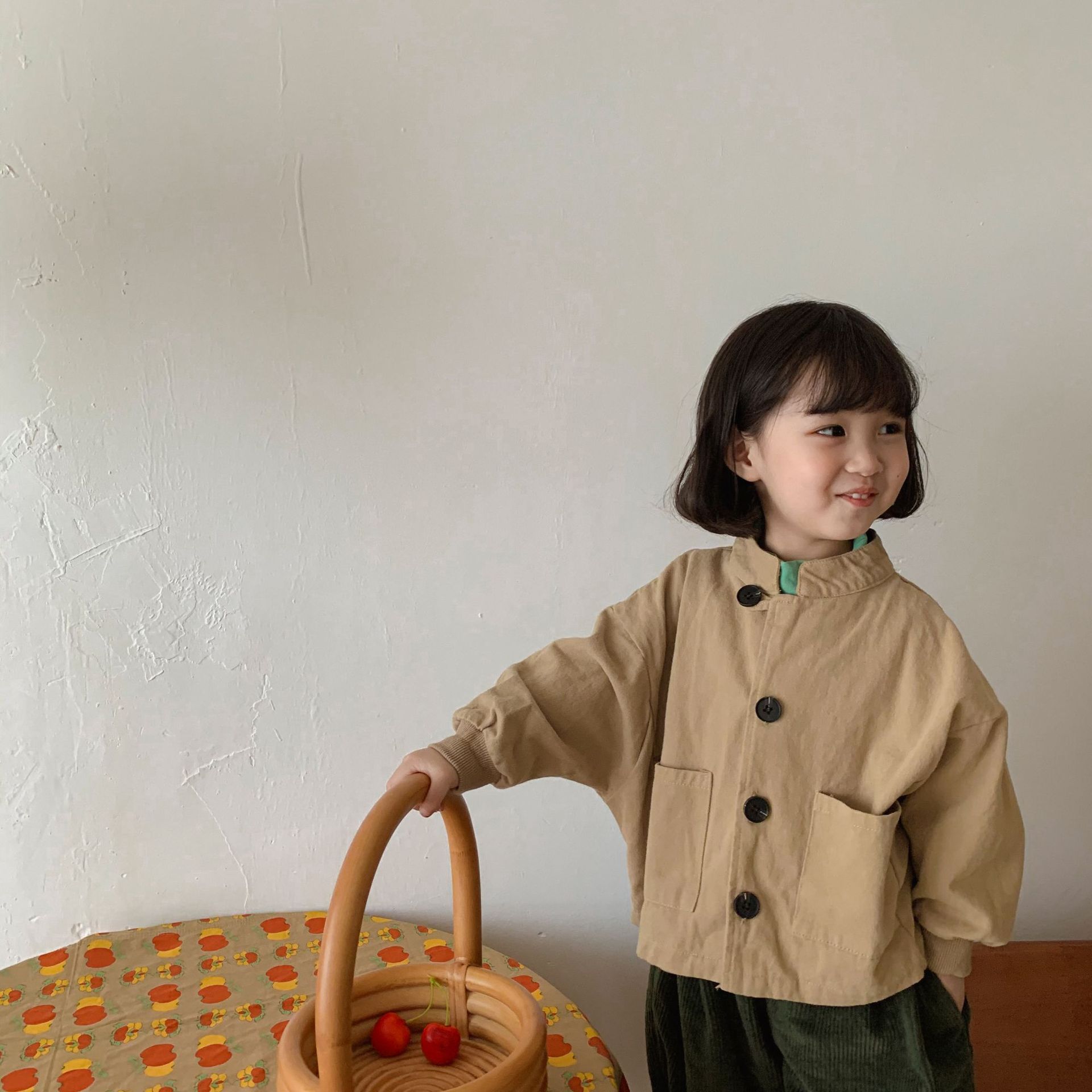 한국 아동 의류 아동 코트 남자와 여자의 아동 의류 아기의 새로운 카디건 느슨한 복고풍 코튼 코트 탑의 한국어 버전
