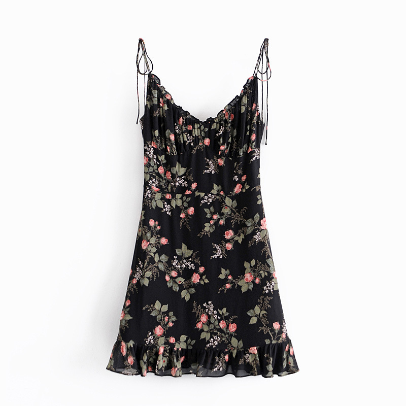 22 OM7051 프렌치 플로럴 프린트 이어 엣지 섹시 브이넥 슬링 원피스 여성 블로거 스커트