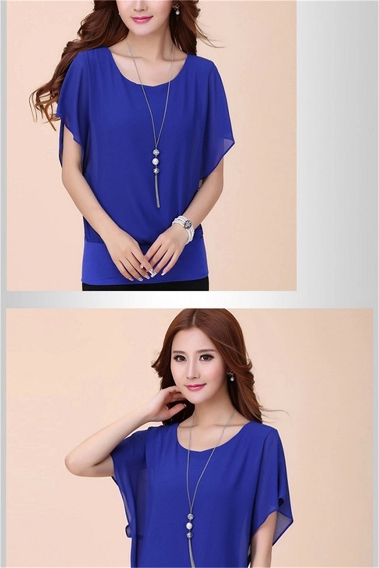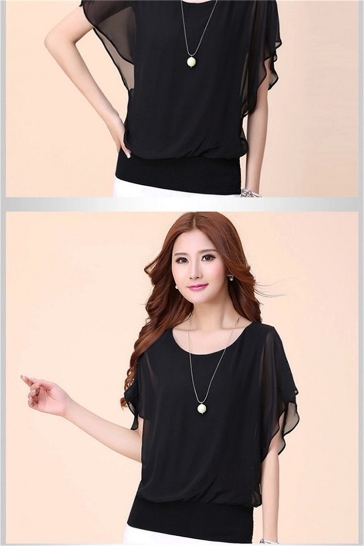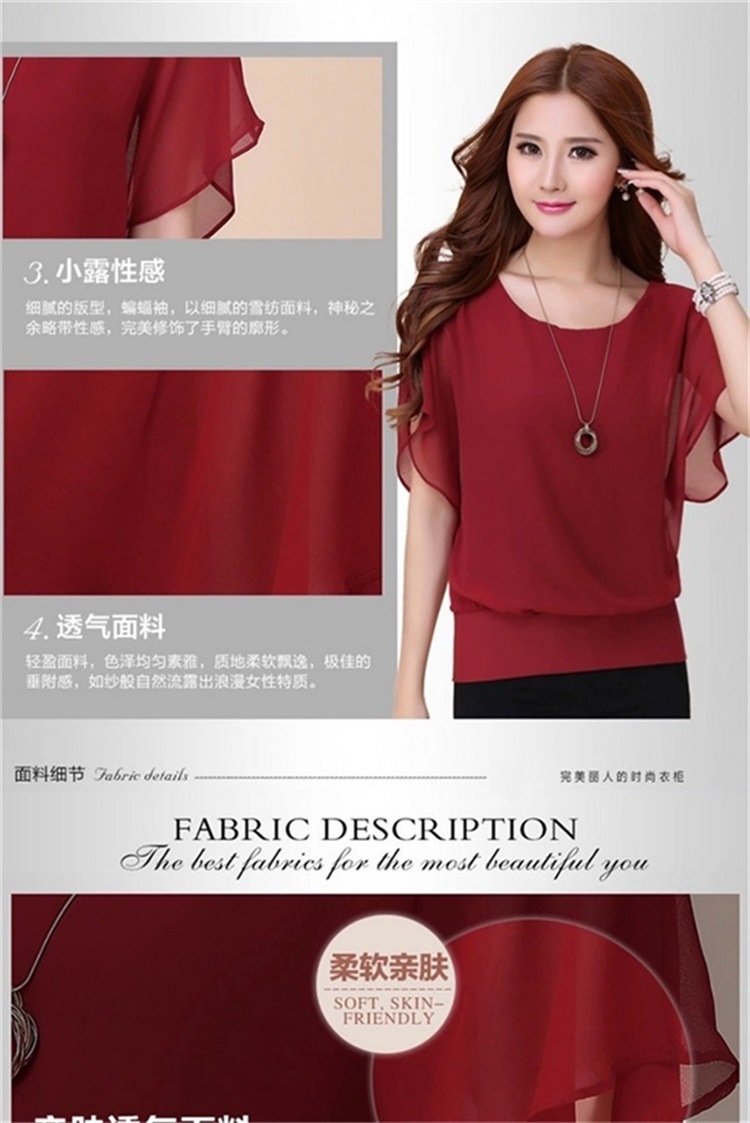봄과 여름 새로운 플러스 사이즈 여성용 통통녀 여름 반팔 여성용 티셔츠 여성용 느슨한 슬리밍 쉬폰 셔츠 탑