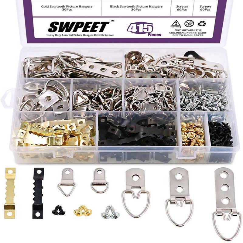 415PC 가정용 사진 프레임 금속 후크 세트 그림 프레임 벽 후크 설치 네일 후크 액세서리 나사 교차 공급스토어 가기