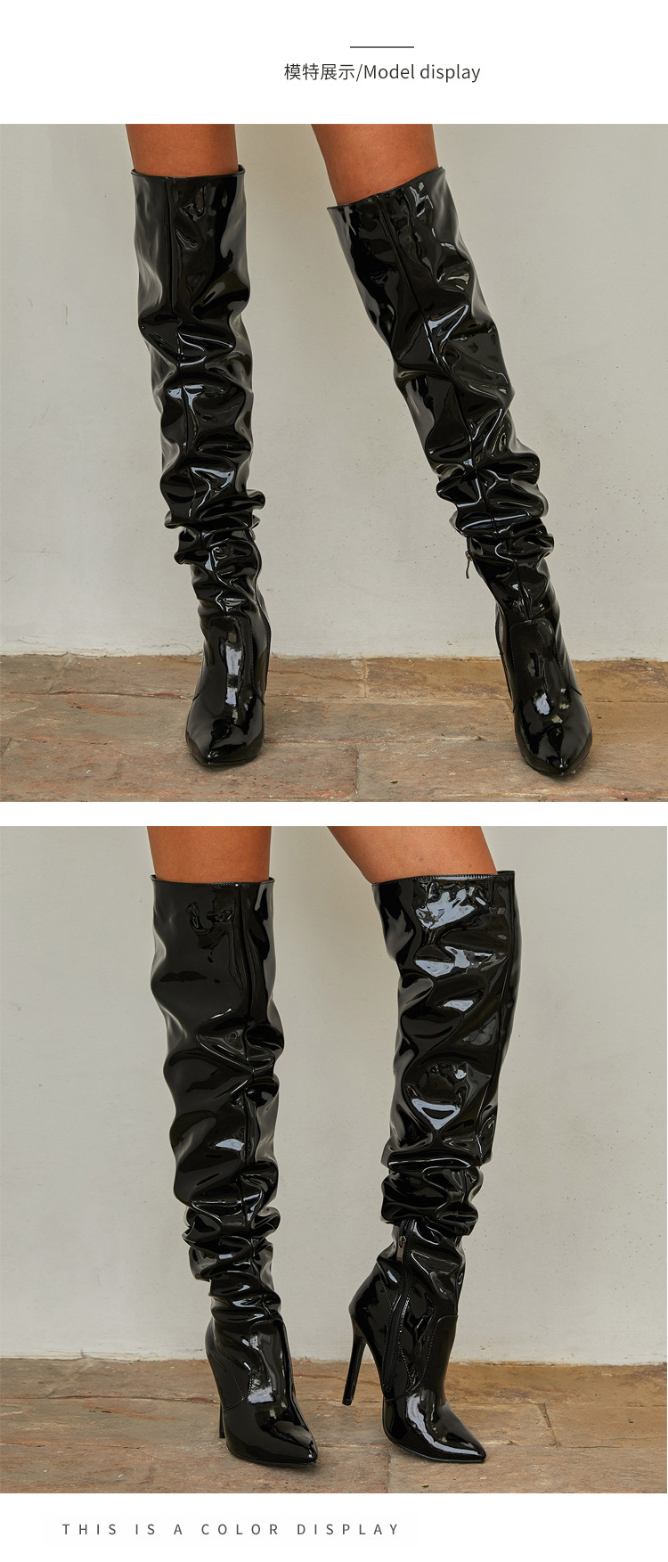 부츠 아마존 가을과 겨울 폭발 유럽과 미국 스타일의 하이힐 롱 부츠 높은 부츠 여성용 부츠 접이식 무릎 위 부츠스토어 가기