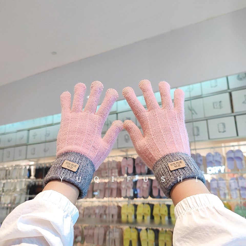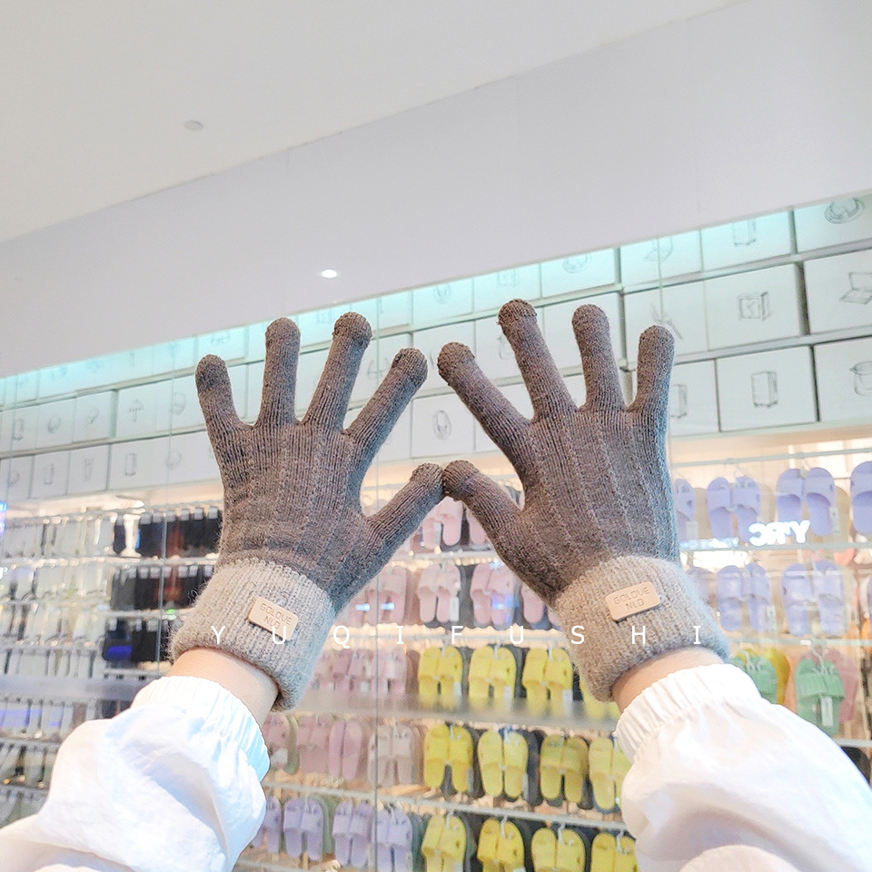 세 손가락 터치 스크린 남자와 여자의 니트 장갑 겨울 따뜻한 바느질 손가락 학생 쓰기 사이클링 두꺼운 기모 손가락 전체 손가락스토어 가기