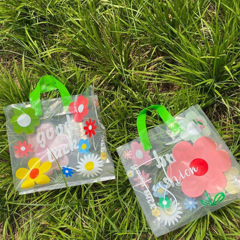 꽃 스타일 투명 플라스틱 의류 매장 플라스틱 핸드백 두꺼운 포장 쇼핑 백 신선한 인터넷 연예인 한국어