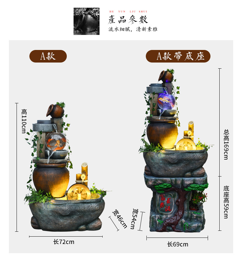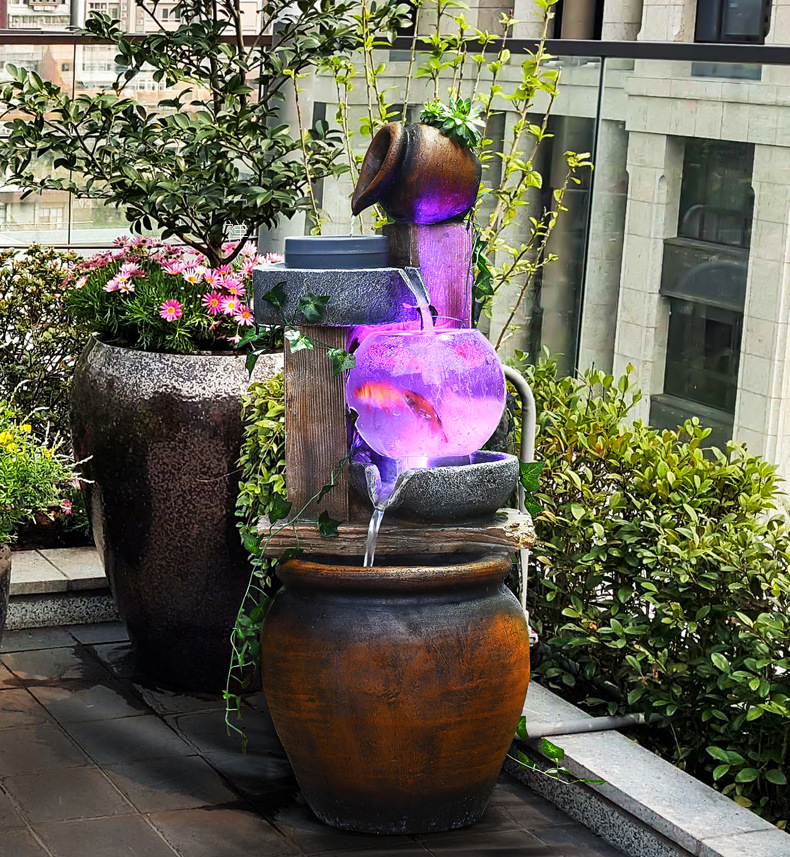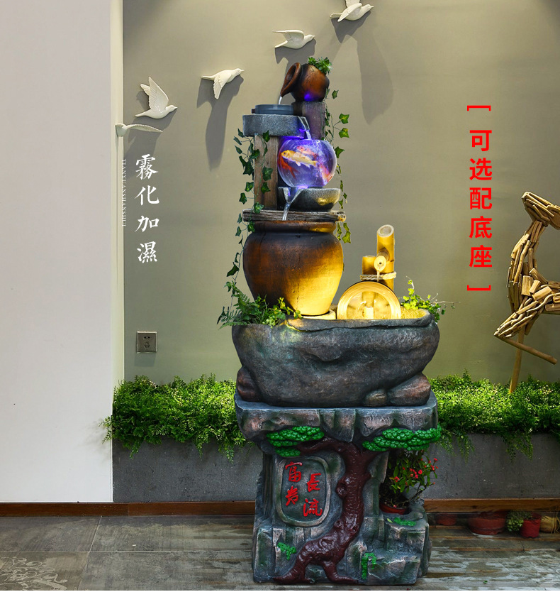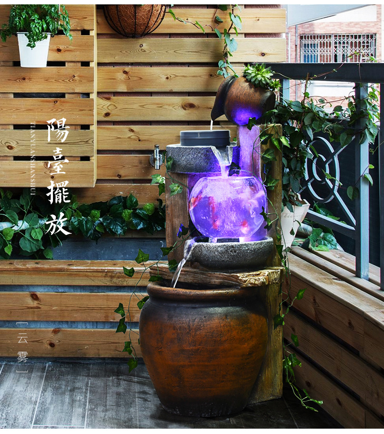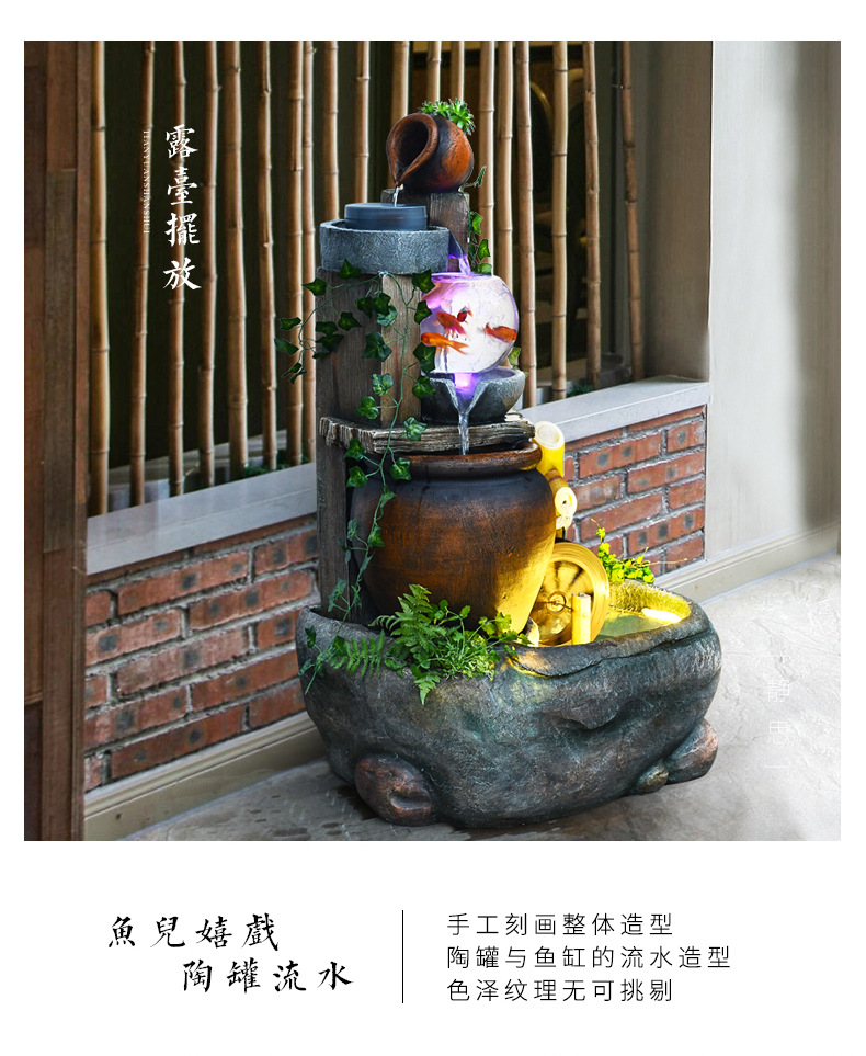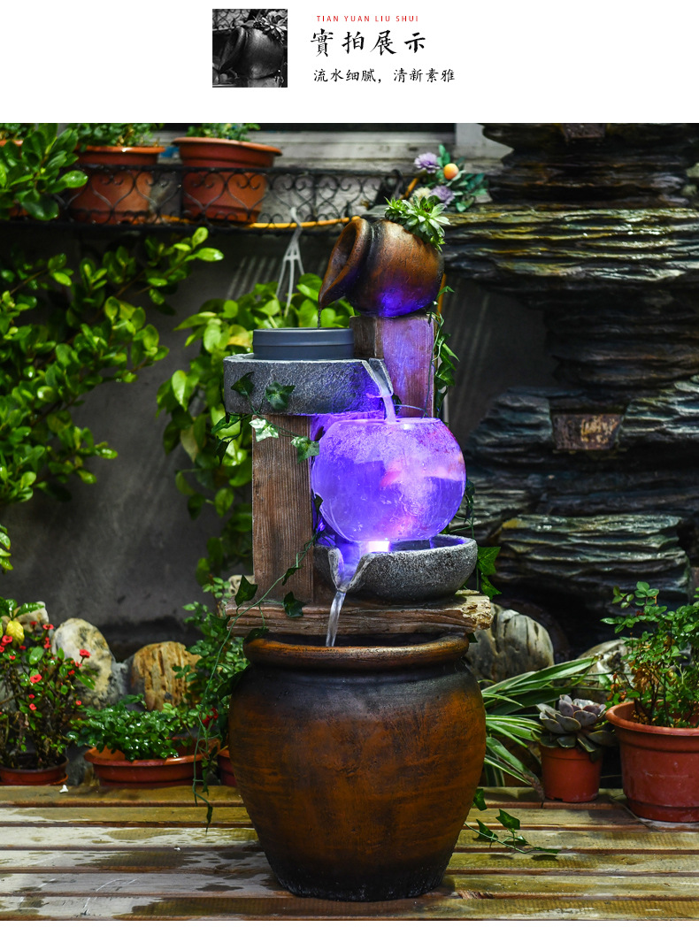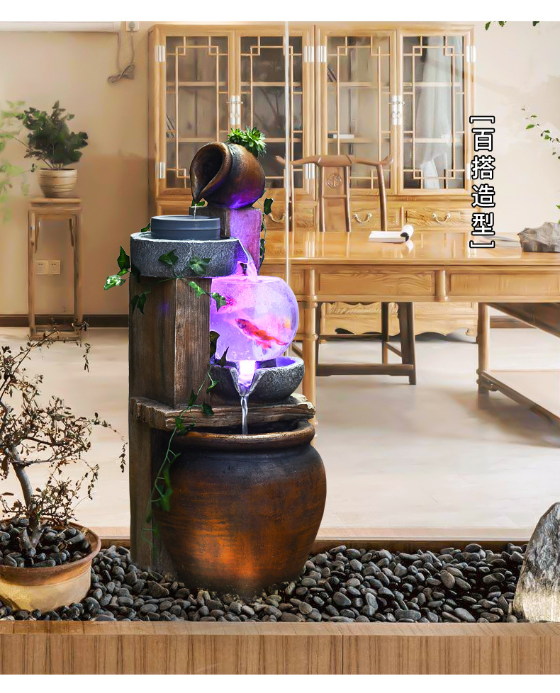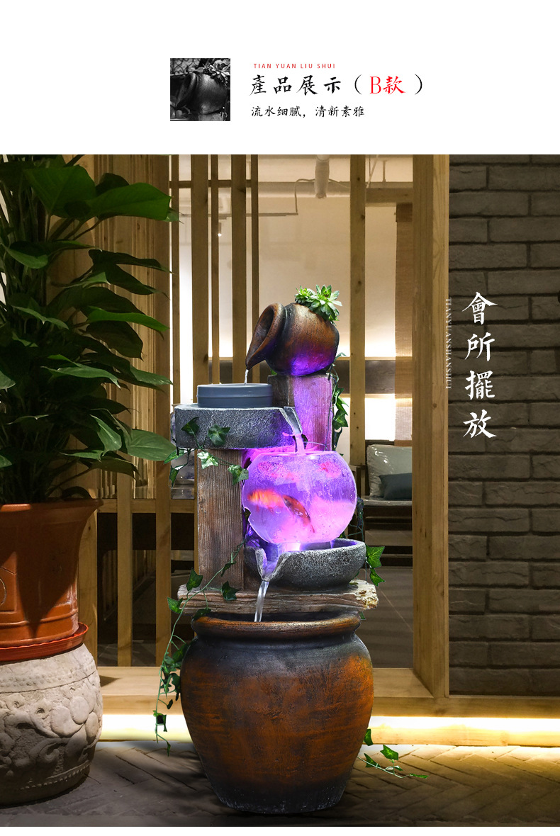 Rockery 분수 정원 안뜰 발코니 물고기 연못 조경 인테리어 거실 장식 창조적 인 흐르는 물 도자기 냄비 조경 장식품스토어 가기