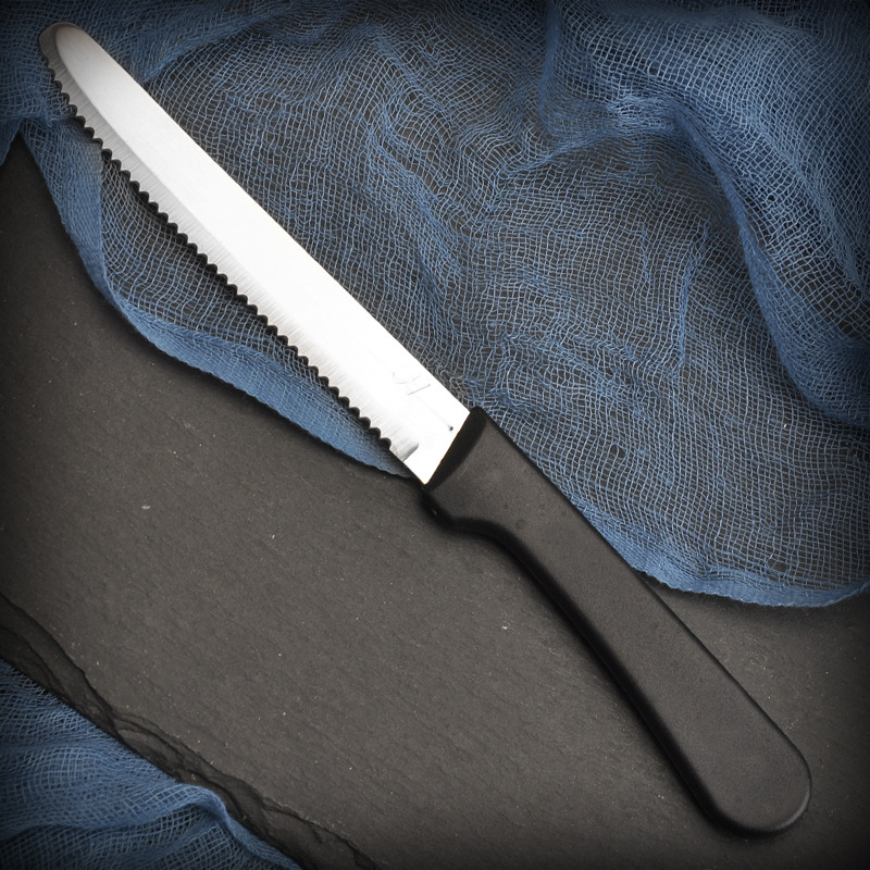 플라스틱 둥근 머리 스테이크 칼 스테인레스 스틸 주방 용품 스테이크 돼지 고기 칼 과일 칼 스테인레스 스틸 나무 손잡이 스테이크 톱니 칼스토어 가기