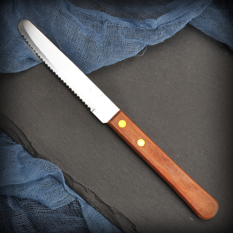 나무 손잡이 스테이크 칼 가정용 스테이크 칼 붙이 스테이크 칼과 포크 스테이크 스테이크 서양 음식 칼 톱니 모양의 스테인레스 스틸 주방 용품스토어 가기