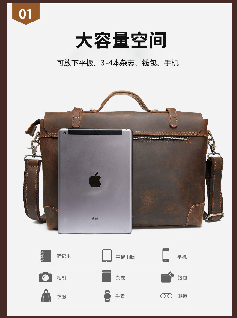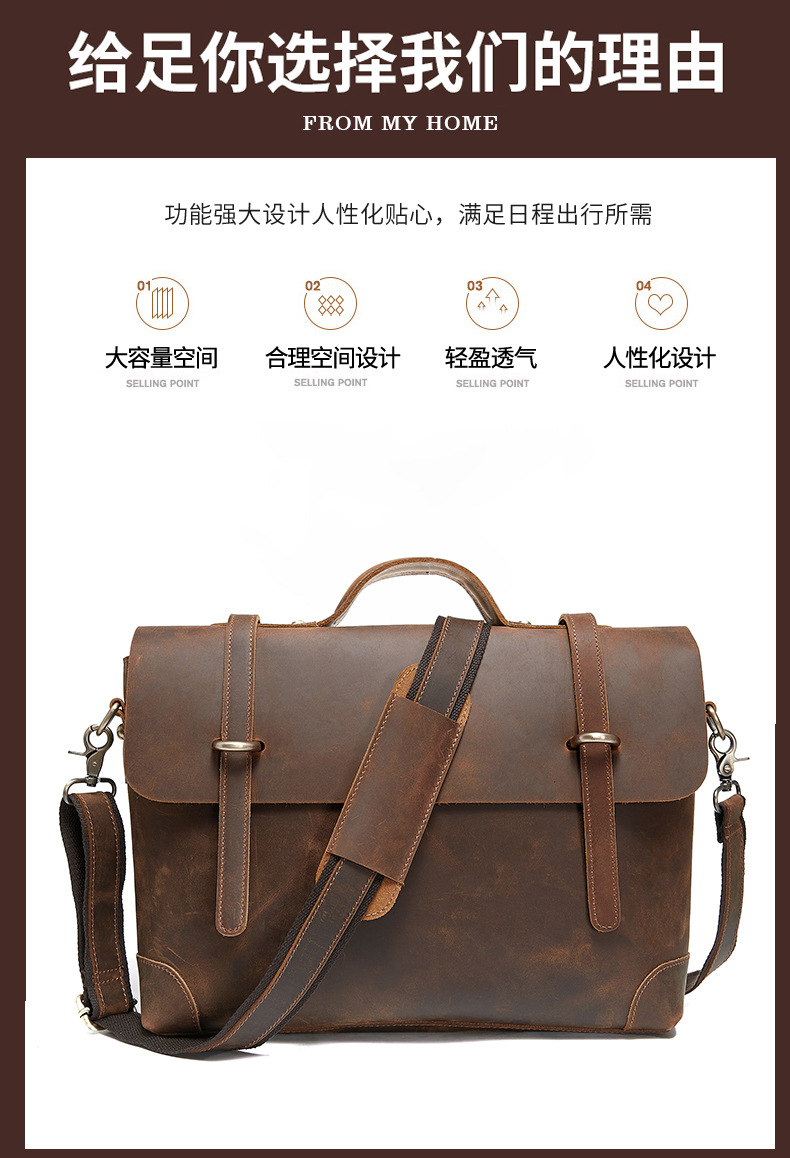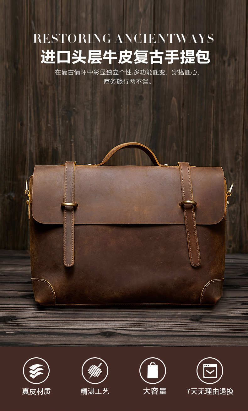 유럽과 미국의 레트로 정품 가죽 남성용 휴대용 서류 가방 어깨 크로스 바디 컴퓨터 가방 미친 말 가죽 비즈니스 여행 남성 가방스토어 가기