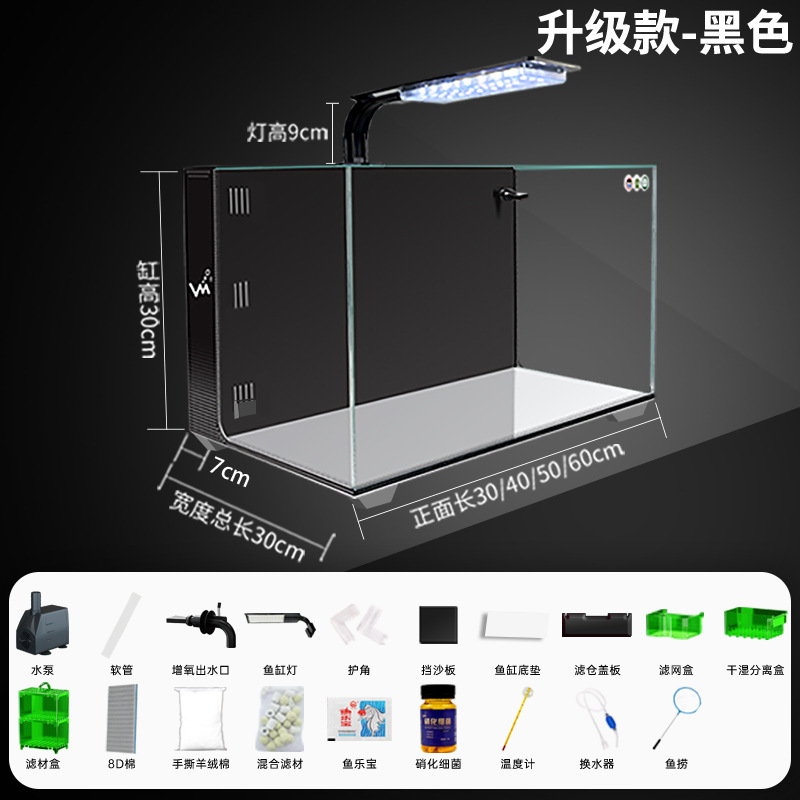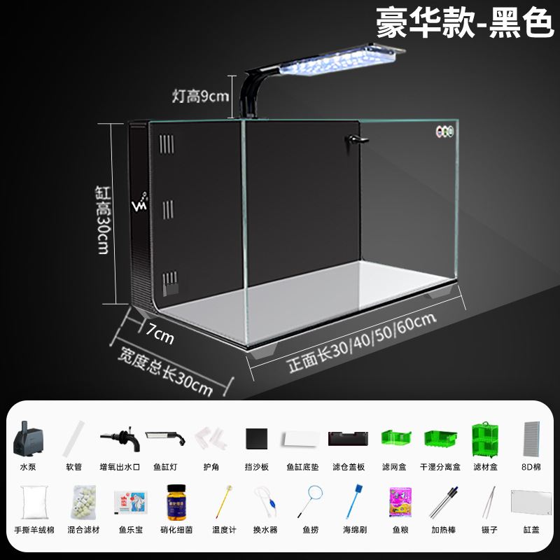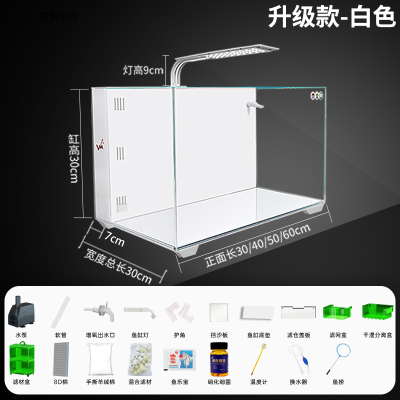 백 필터 작은 어항 가정용 거실 사무실 물 무료 자체 순환 울트라 화이트 유리 수족관