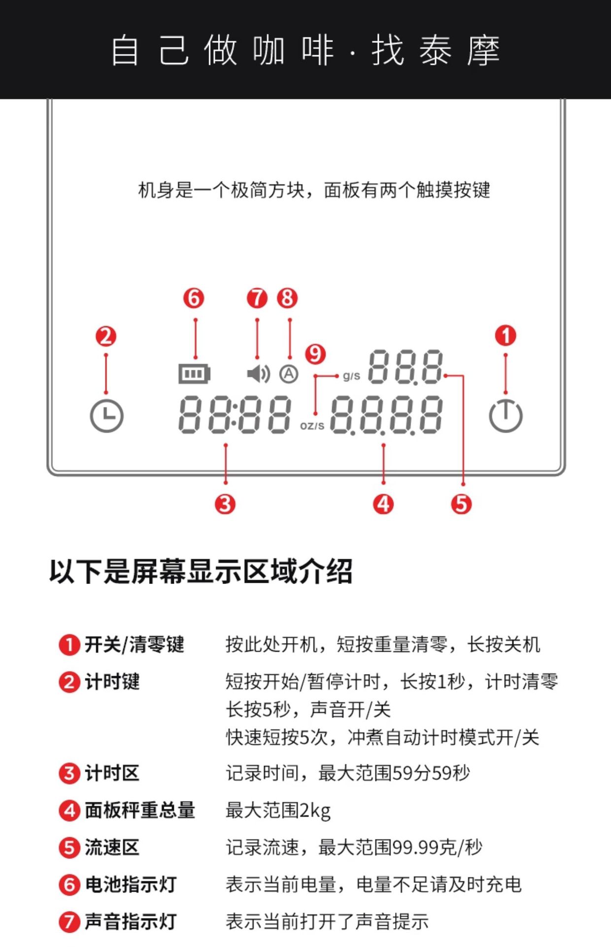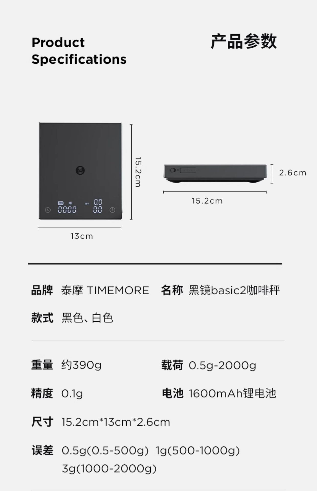 Taimo Black Mirror BASIC2 커피 전자 저울 이탈리아 손으로 끓이는 기기 특수 커피 콩 그램 계량 및 타이밍스토어 가기