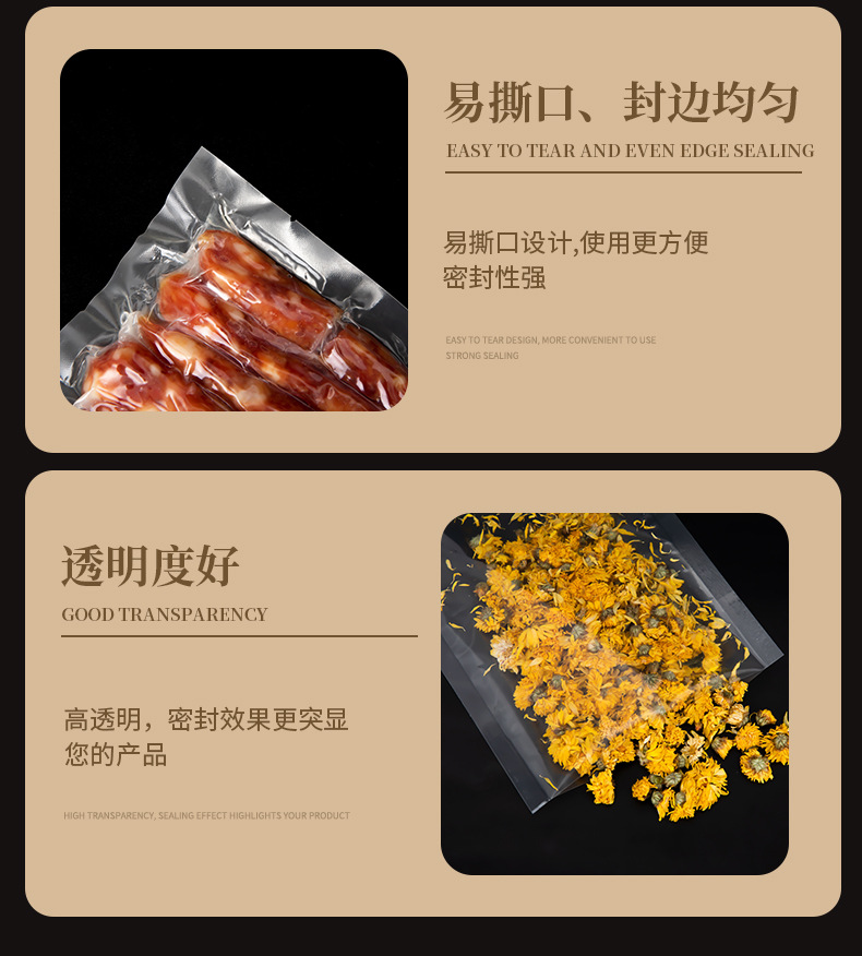 투명 진공 식품 가방 밀봉 압축 가방 상업용 진공 가방 포장 식품 등급 3 면 밀봉 진공 가방 도매스토어 가기