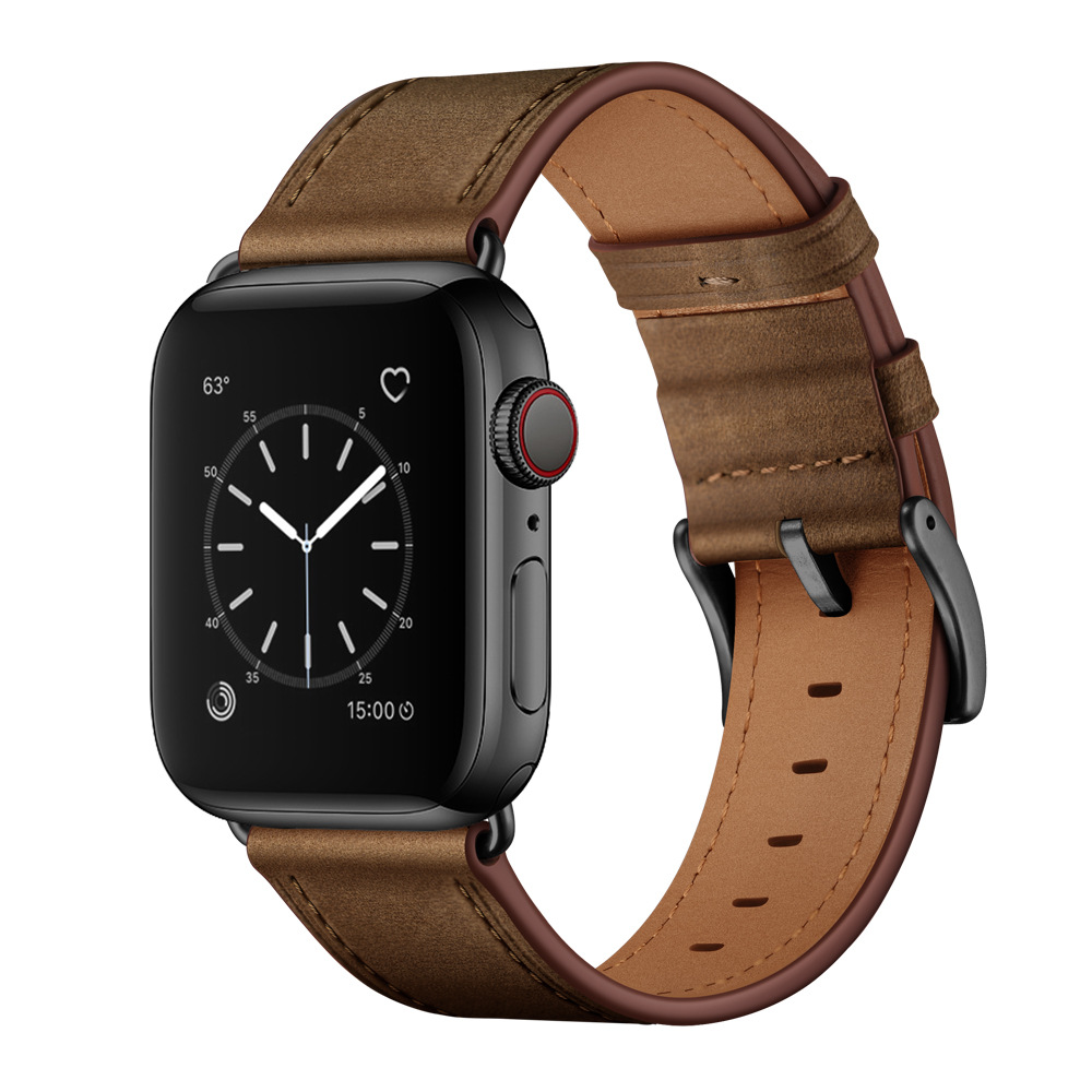 애플 워치 스트랩 iWatch 정품 가죽 스트랩 클래식 다크 다크 브라운 빈티지 오일 왁스 메탈 블랙 버클 스트랩