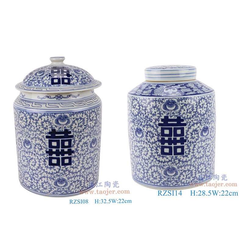 产 品 名 称:青花缠枝喜字纹盖罐储物罐茶叶罐