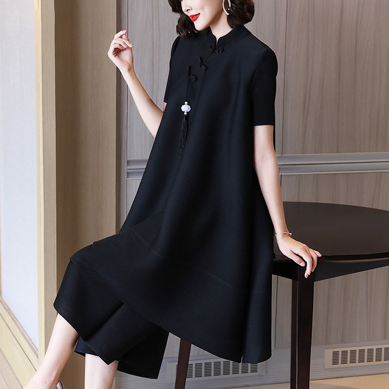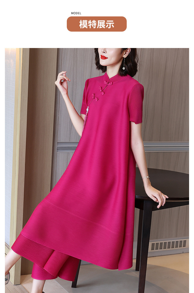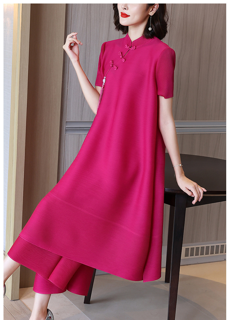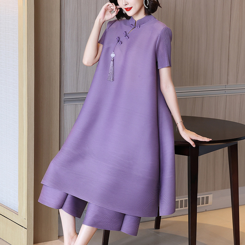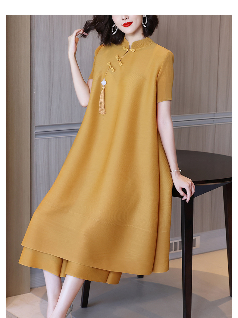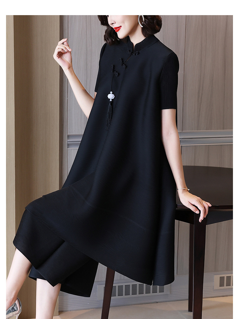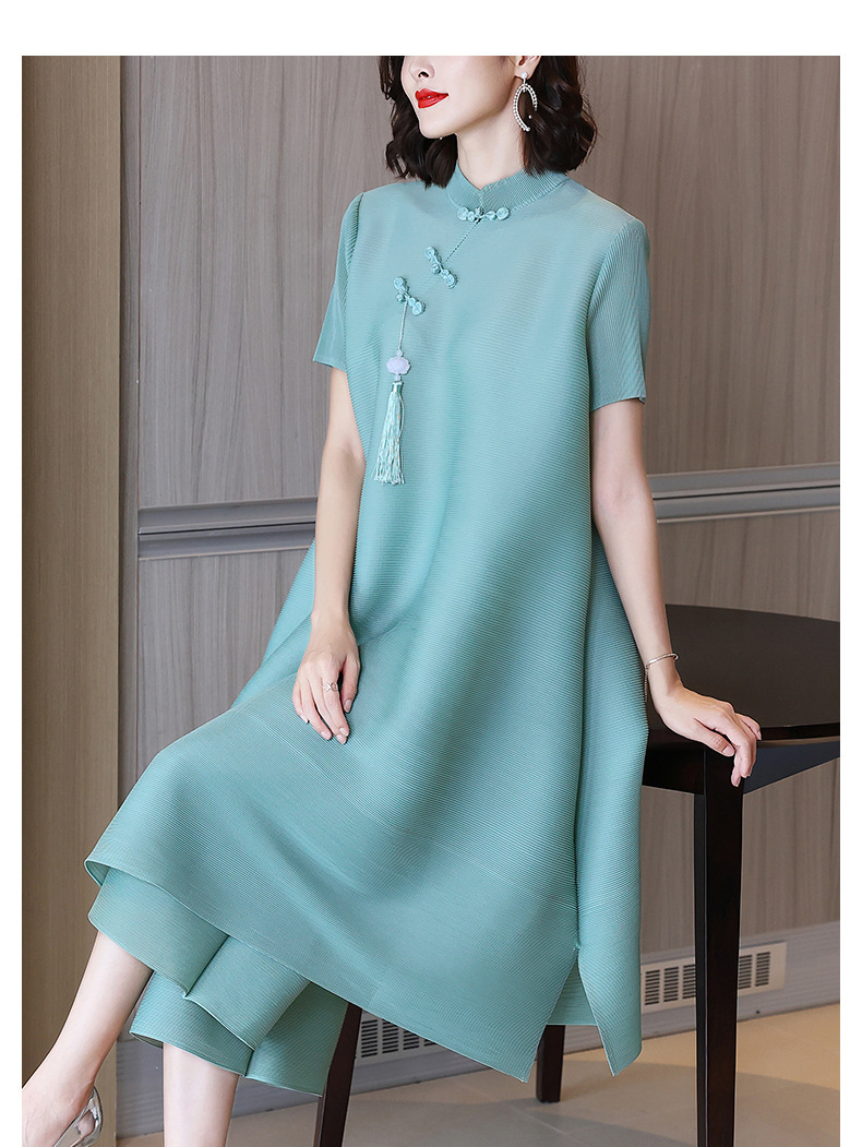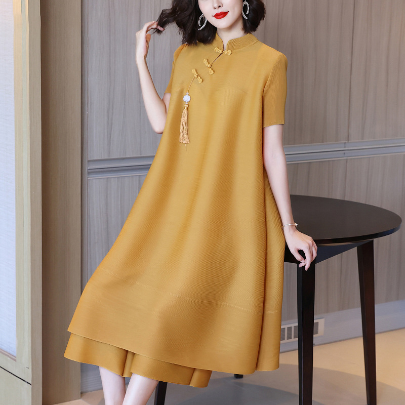 2026년 여름 신상품 미야케 플리츠 플러스 사이즈 여성복, 에스닉 스타일의 단추 장식, 단색, 우아한 투피스 여성 원피스스토어 가기