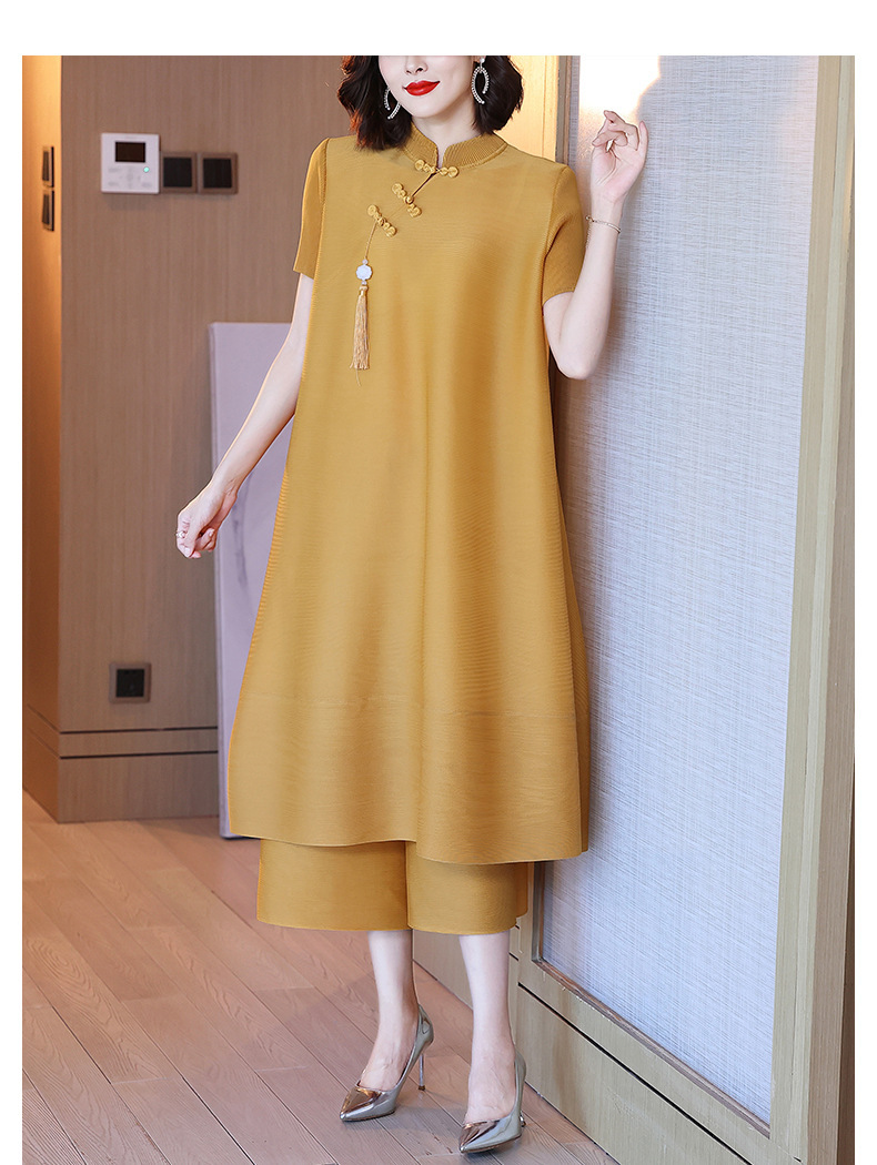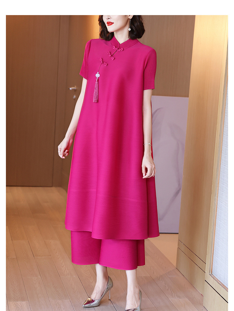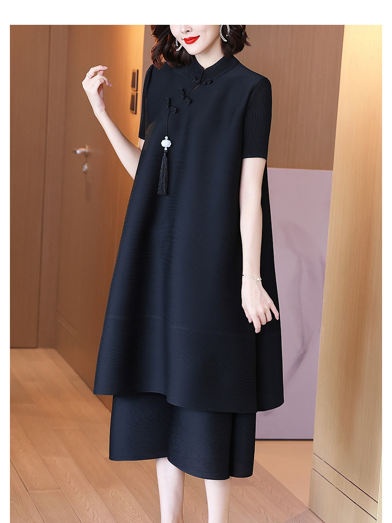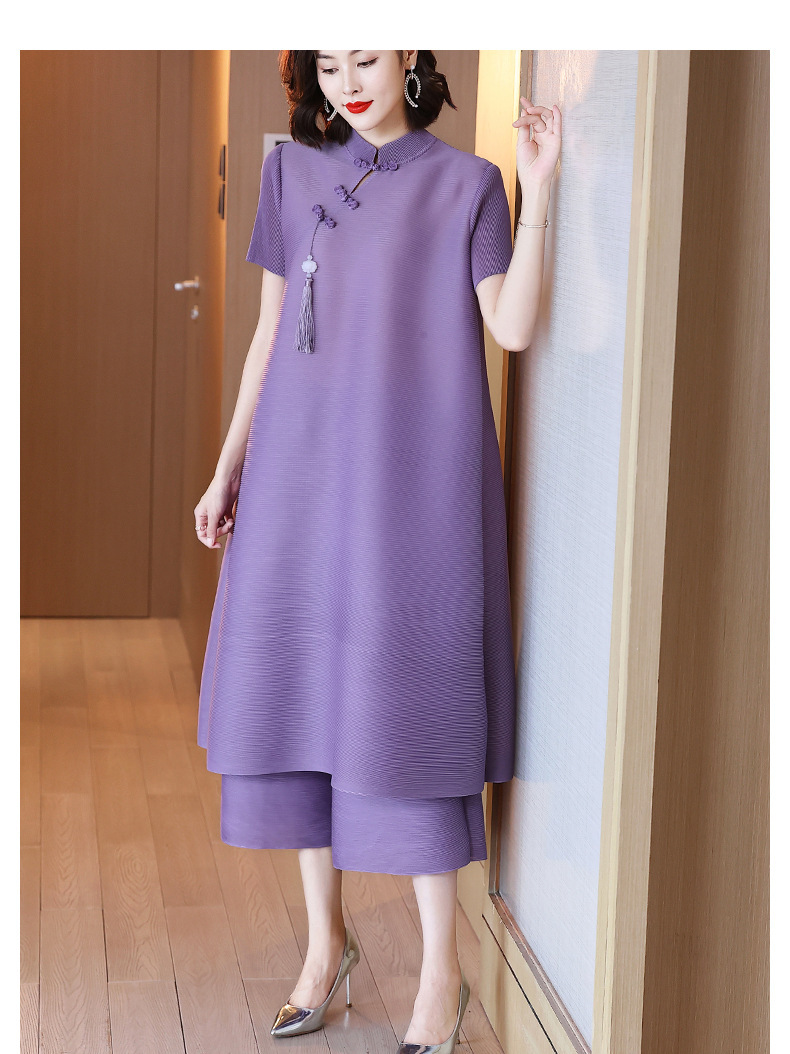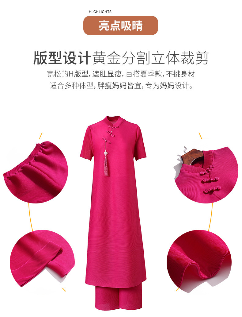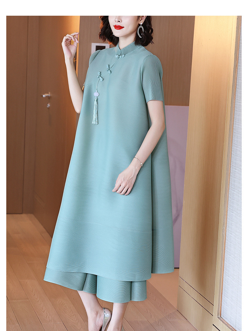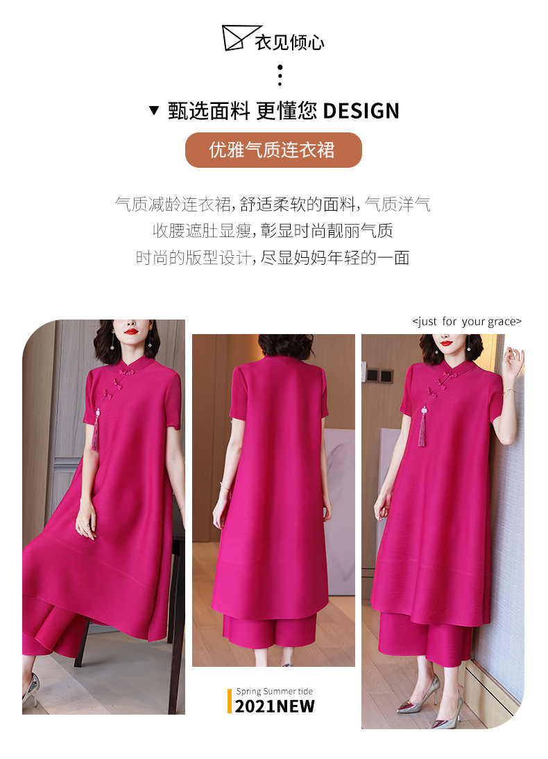 2026년 여름 신상품 미야케 플리츠 플러스 사이즈 여성복, 에스닉 스타일의 단추 장식, 단색, 우아한 투피스 여성 원피스스토어 가기