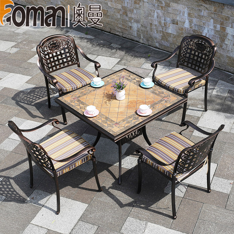 야외 테이블 및 의자 안뜰 유럽식 캐스트 알루미늄 3-5 피스 테라스 야외 정원 철제 가구 발코니 레저스토어 가기