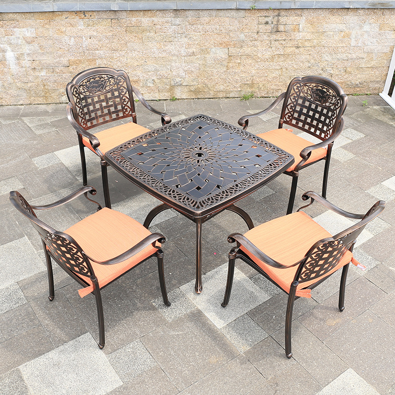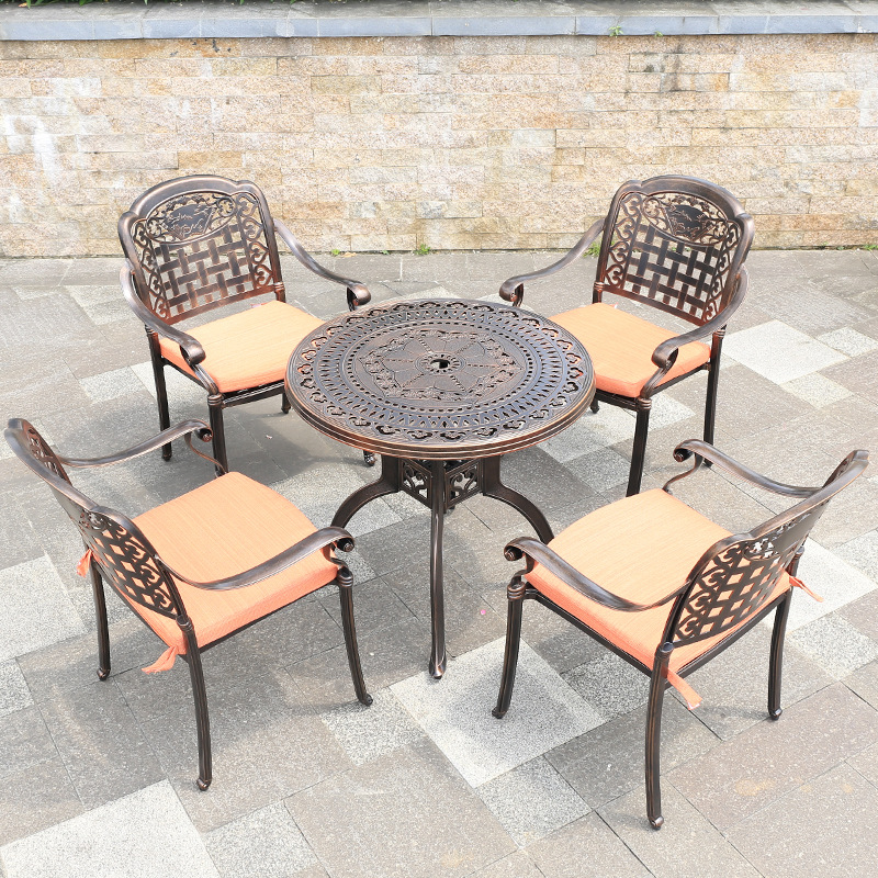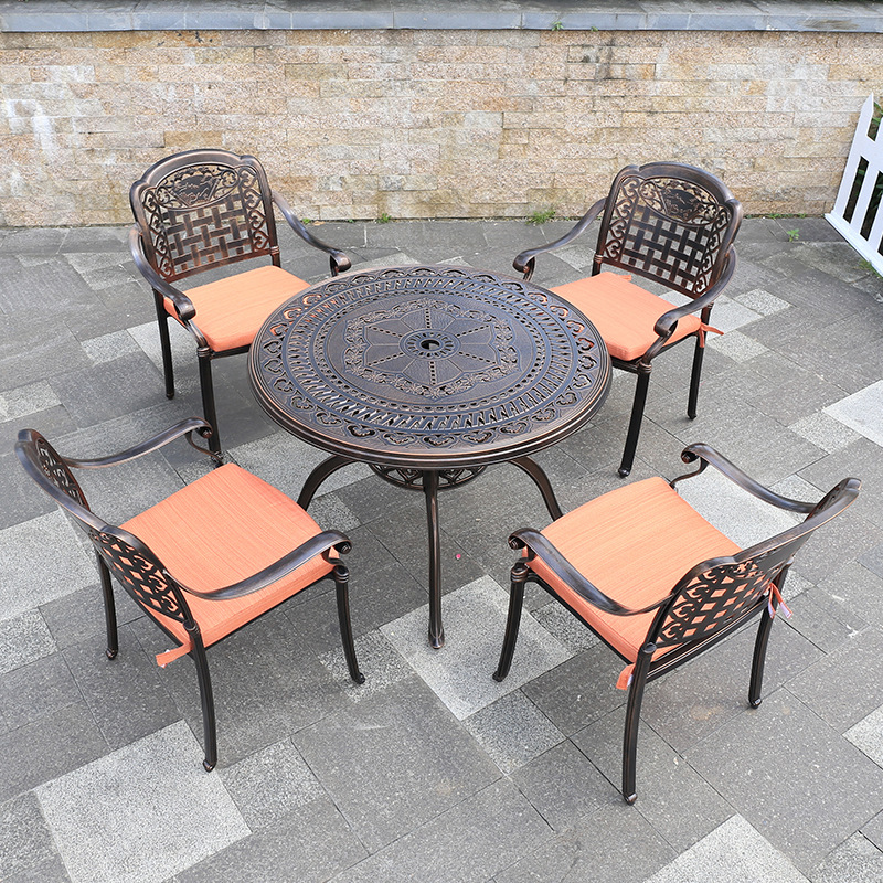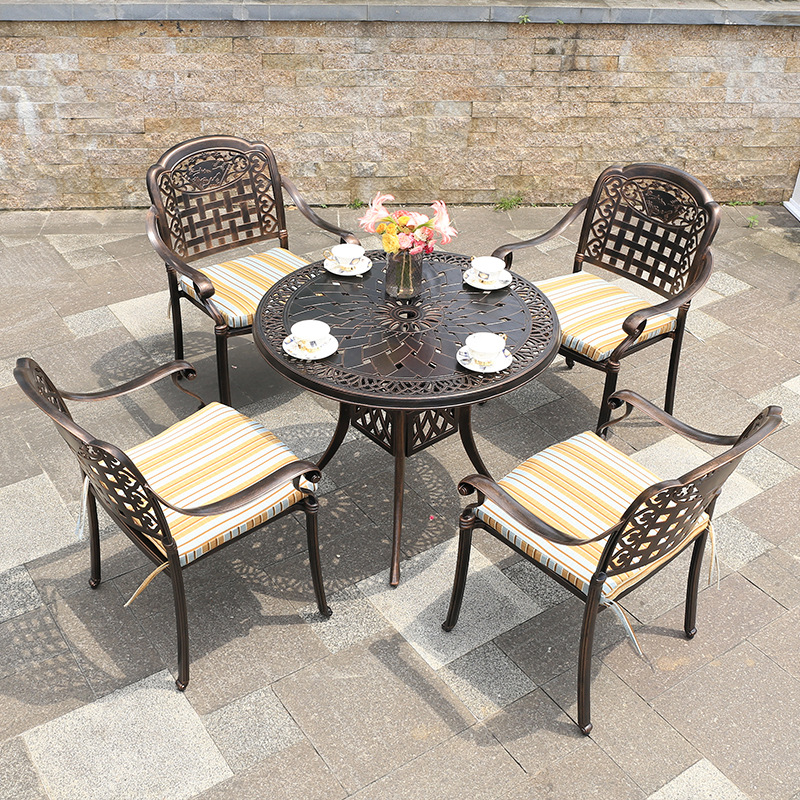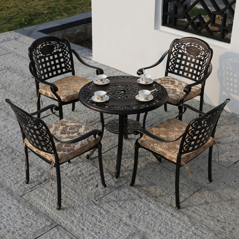 야외 테이블 및 의자 안뜰 유럽식 캐스트 알루미늄 3-5 피스 테라스 야외 정원 철제 가구 발코니 레저