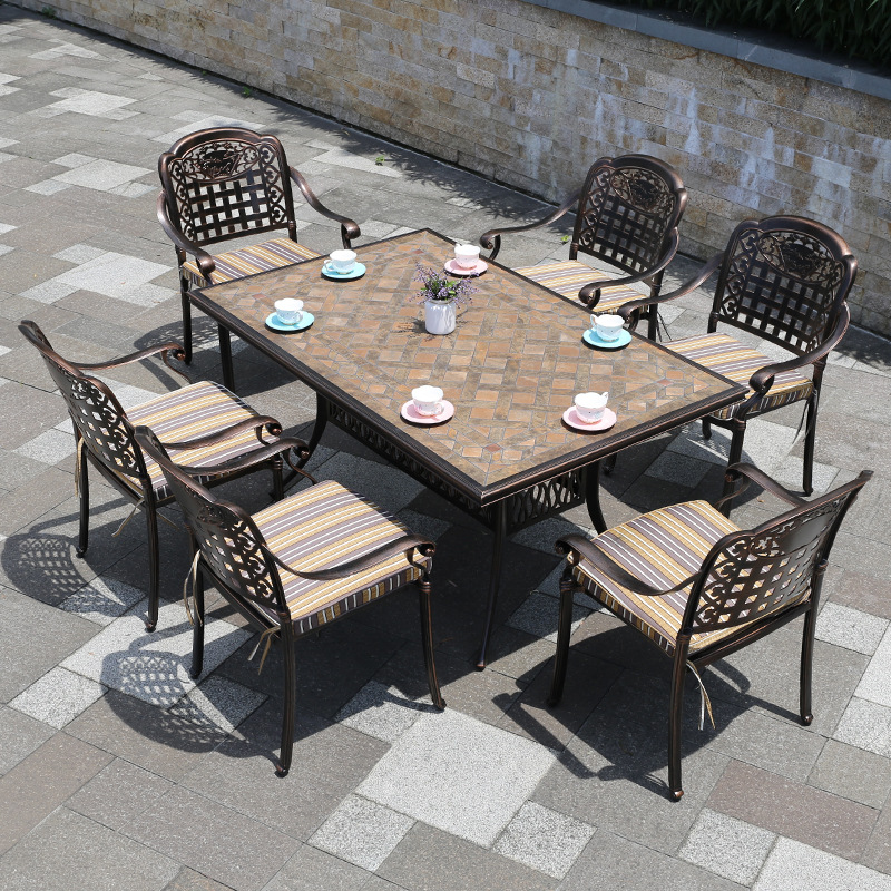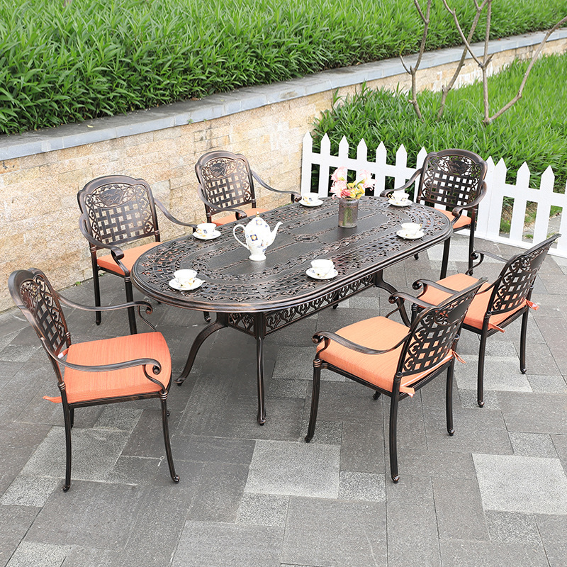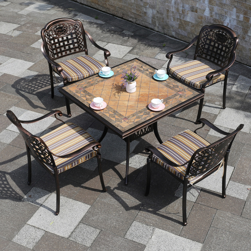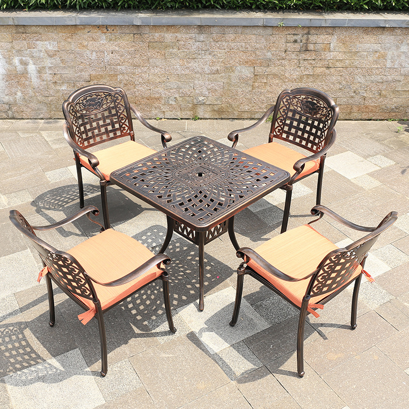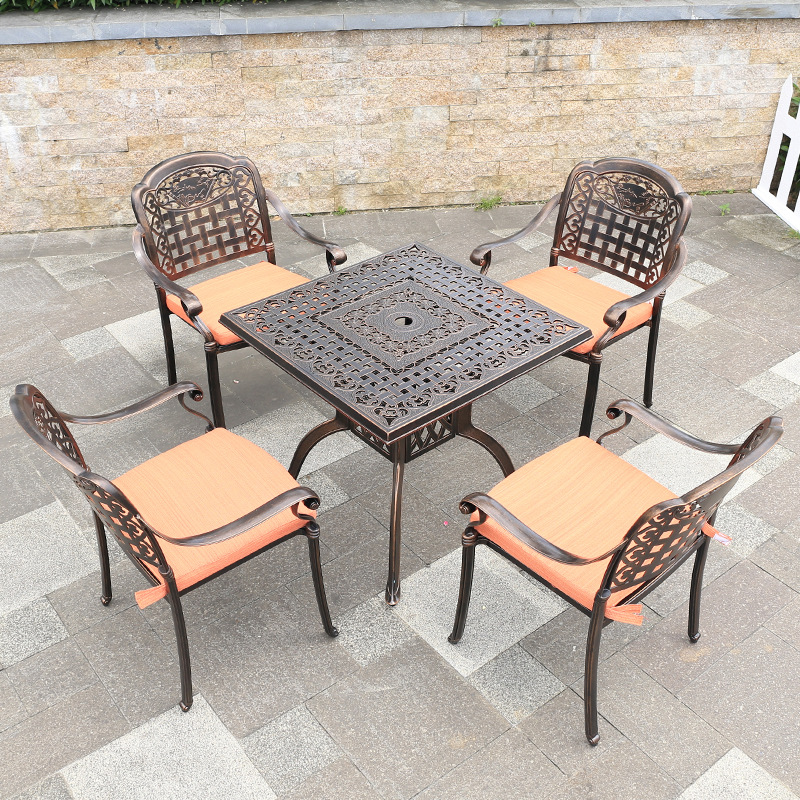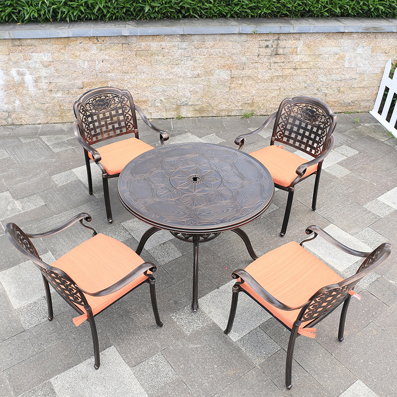 야외 테이블 및 의자 안뜰 유럽식 캐스트 알루미늄 3-5 피스 테라스 야외 정원 철제 가구 발코니 레저