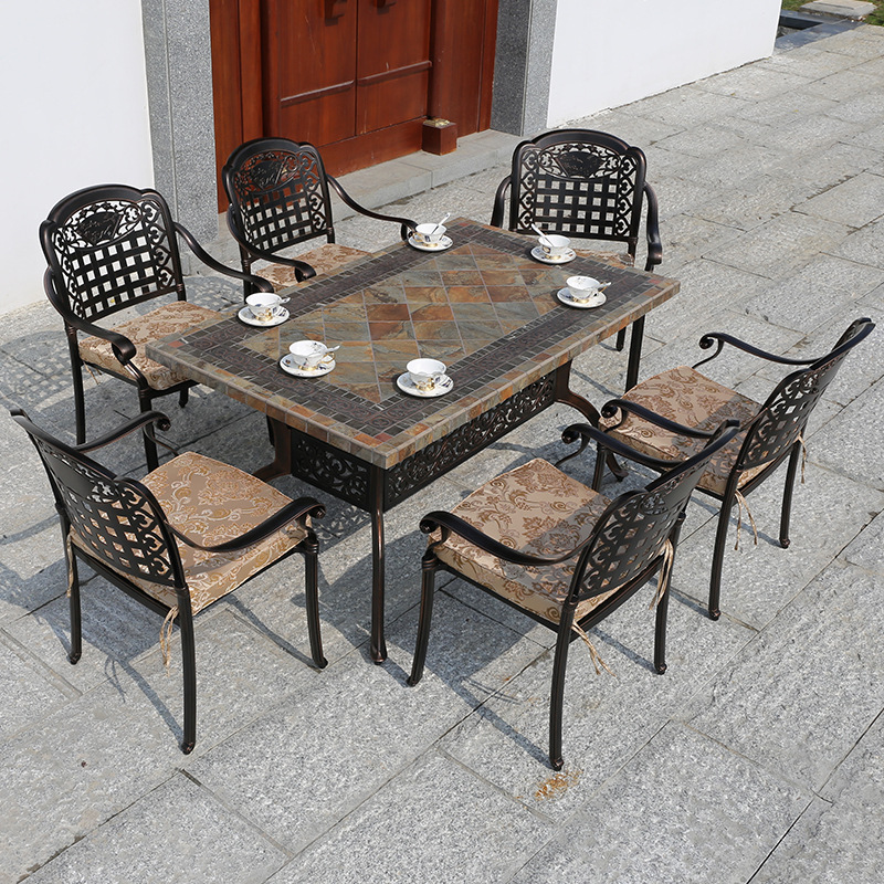 • 조합 12:6 의자 + 150*90 * H76 모조 슬레이트 타일 긴 테이블