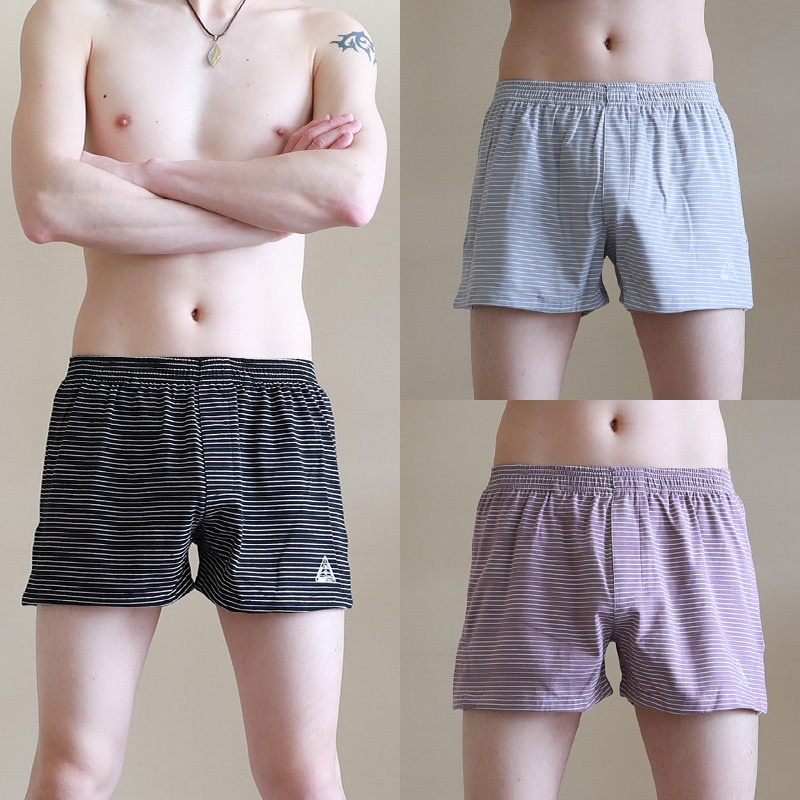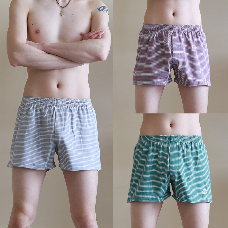 Hua Jielong 남성 속옷 남성 스트라이프 복서 바지 면 복서 바지 남성 느슨한 얇은 통기성 화살표 바지스토어 가기