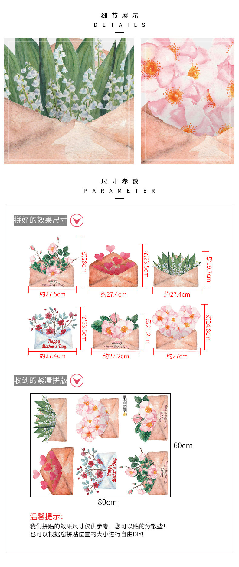 3、 若粘贴的墙面受潮、老化或刚刷了新漆,粘贴后可能会引起墙贴自动脱落,或者会引起墙面剥落,可以用吹风机热风将墙面吹干或待漆面挥发一段时间后再贴,但效果可能会有所出入,所以敬请广大顾客慎选所贴位置;