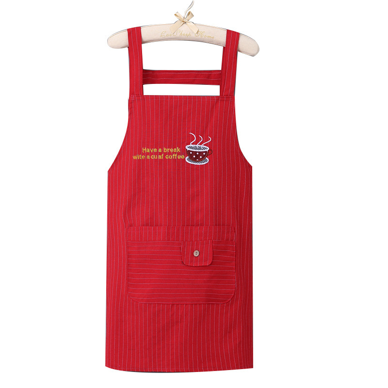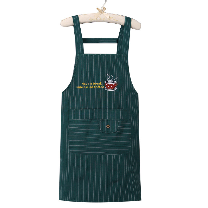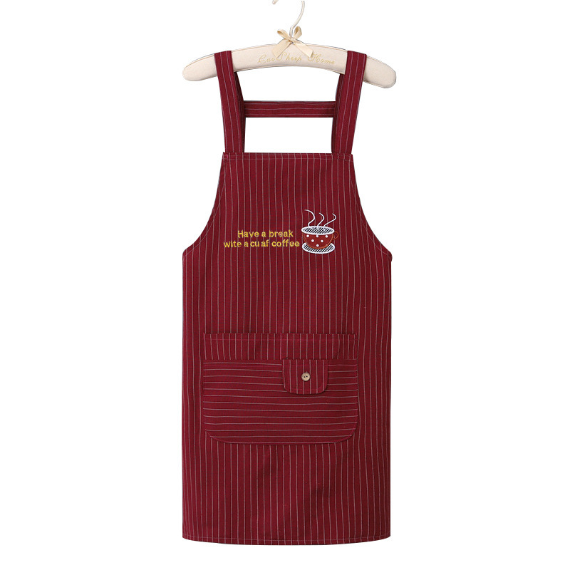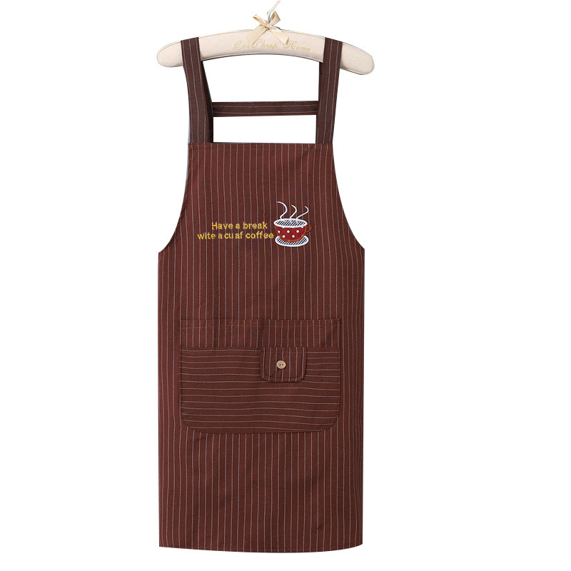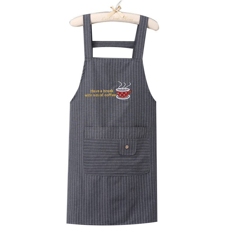 면과 린넨 믹스 민소매 끈 앞치마, 차컵 자수, 밀크티 가게용 방오 어깨끈 앞치마, 패셔너블한 여성 작업복