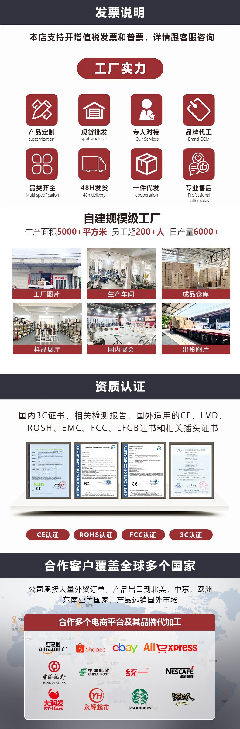 可提供欧规、美规、英规、大小南非等多国插头定制,适配全球跨境市场。