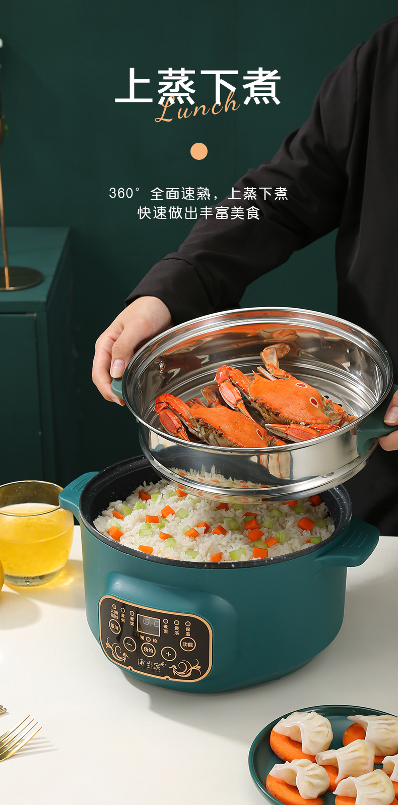 终端用户(学生 / 租房 / 家庭):一口锅包揽煎烤、炒菜、煮饭、煮粥、熬汤、涮锅全场景,不用买多种厨具,节省空间 + 预算,宿舍限电也能用;