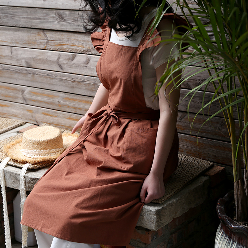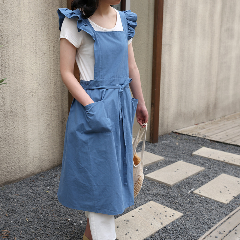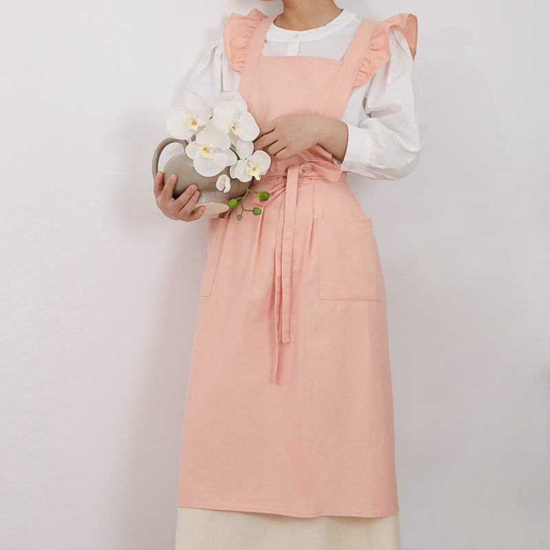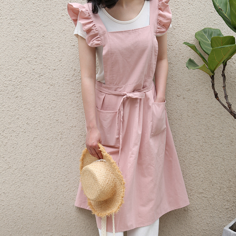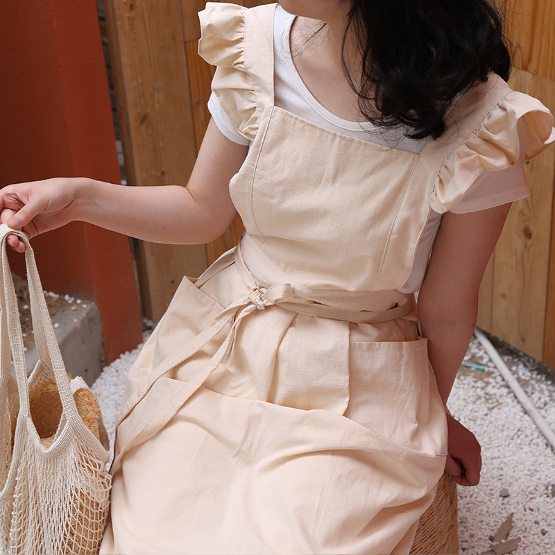 작은 비행 소매 프릴 앞치마 한국 스타일 소녀 문학 커피 숍 정원 베이커리 하우스 주방 방오 앞치마 도매스토어 가기