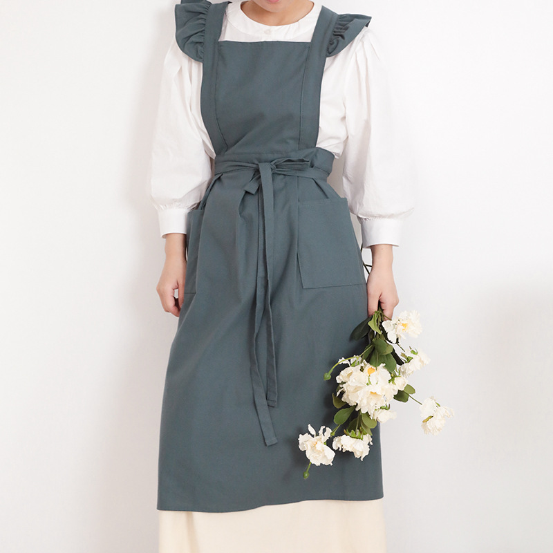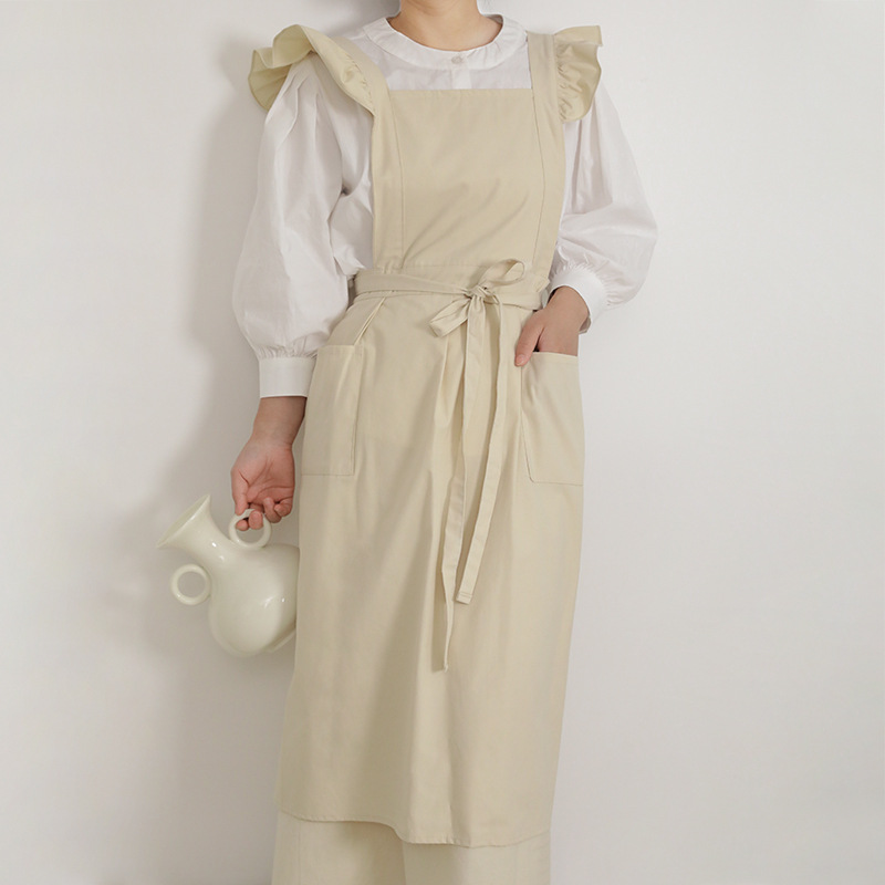 작은 비행 소매 프릴 앞치마 한국 스타일 소녀 문학 커피 숍 정원 베이커리 하우스 주방 방오 앞치마 도매