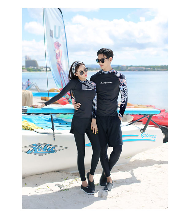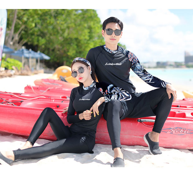 여름 2021 남자와 여자의 커플 다이빙 세트 긴 소매 분할 태양 방지 해파리 속건 스노클링 서핑 수영복 세트