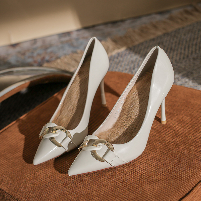 93503 하이힐 여성용 스틸레토 힐 2022 여름 새로운 모든 매치 섹시한 뾰족한 발가락 얕은 뱀프 에나멜 가죽 프렌치 싱글 레이어 신발스토어 가기