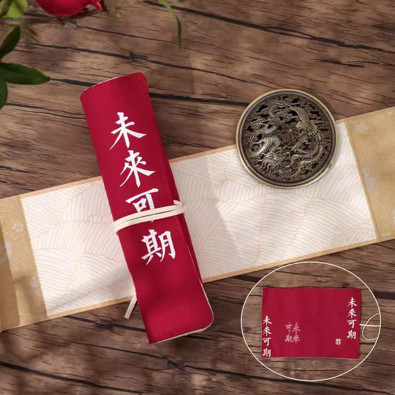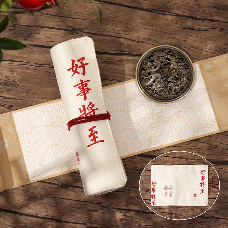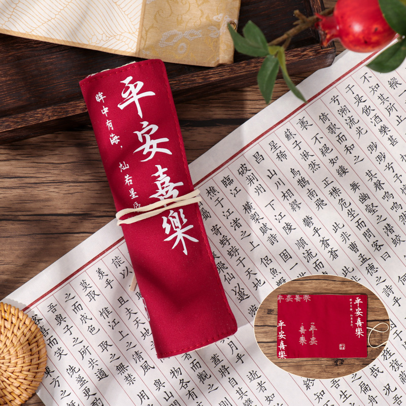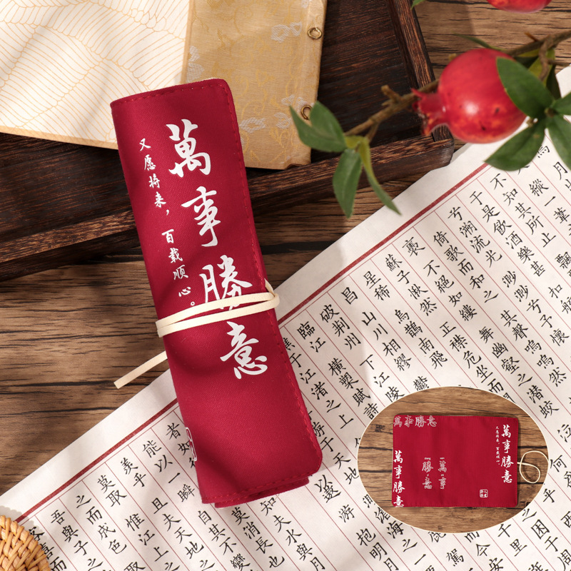 Mu Ran은 종종 해피 시리즈 크리에이티브 연필 가방 롤 펜 커튼 문구 상자 단색 심플 펜 커튼 롤 펜 가방 크리에이티브스토어 가기