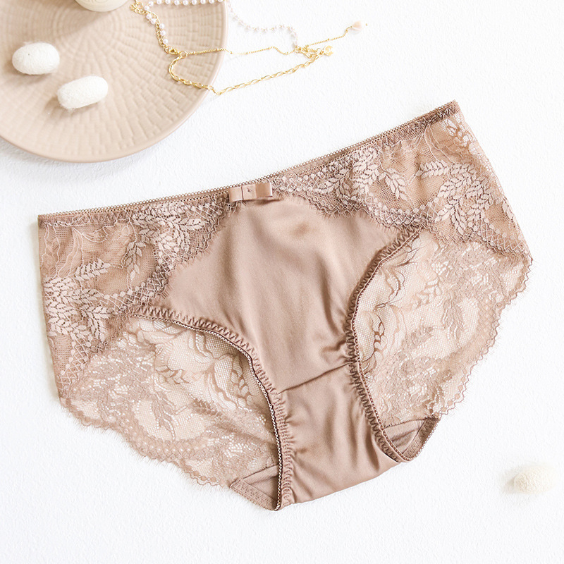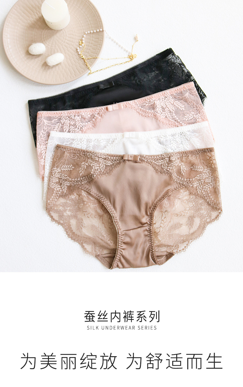 탱지 실크 새틴 팬티 여성용 뽕나무 실크 레이스 섹시한 중간 허리 팬티 반바지 통기성 피부 친화적스토어 가기