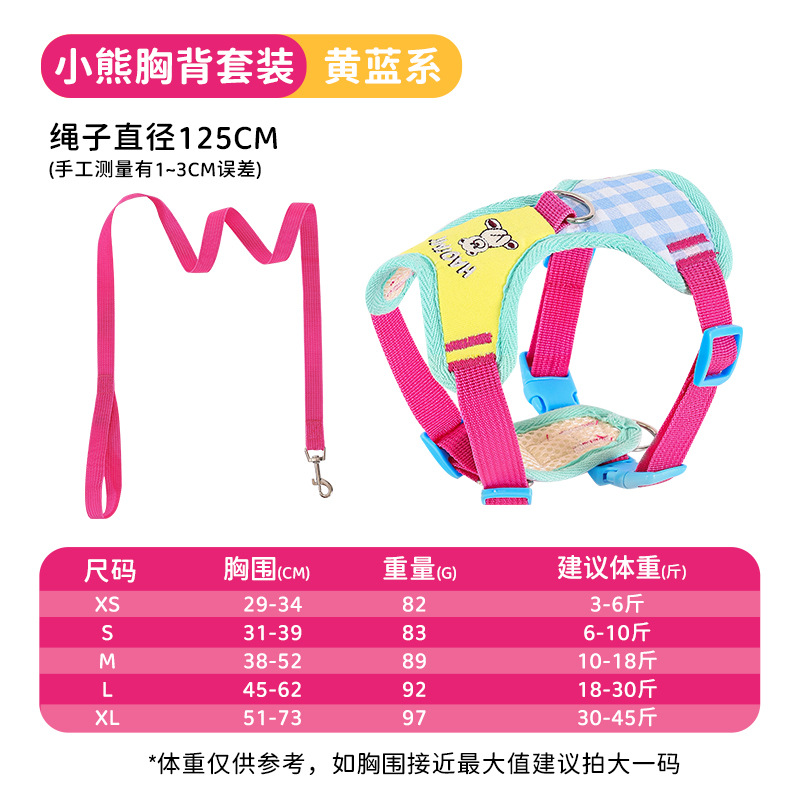 • 곰 가슴과 등 슈트 노란색과 파란색