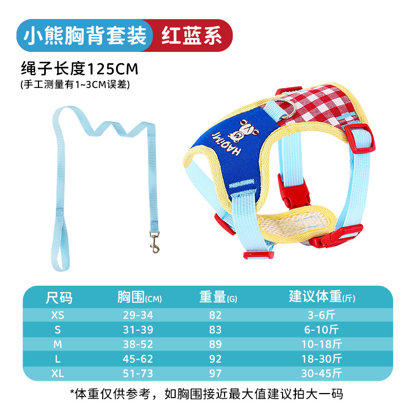 • 곰 가슴과 등 슈트 빨간색과 파란색